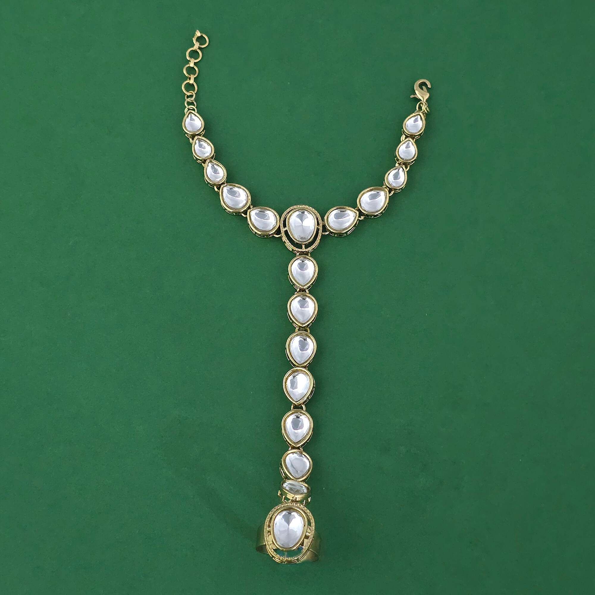 Kanhai Jewels offers an exclusive collection of finest quality crafted Fashion Jewellery in various colors. We make sure that our collection of Indo Western Classic Hath Pan With Mehndi Plating are beautiful, elegent & will surely galvanize you, because our products are unique, comfortable, fashion forward & very popular for the rich look. Base Metal of our product is Alloy, i.e Mixing of Copper, Brass & Zinc. We pack all the products using quality packaging material to ensure safe and secure transportation.