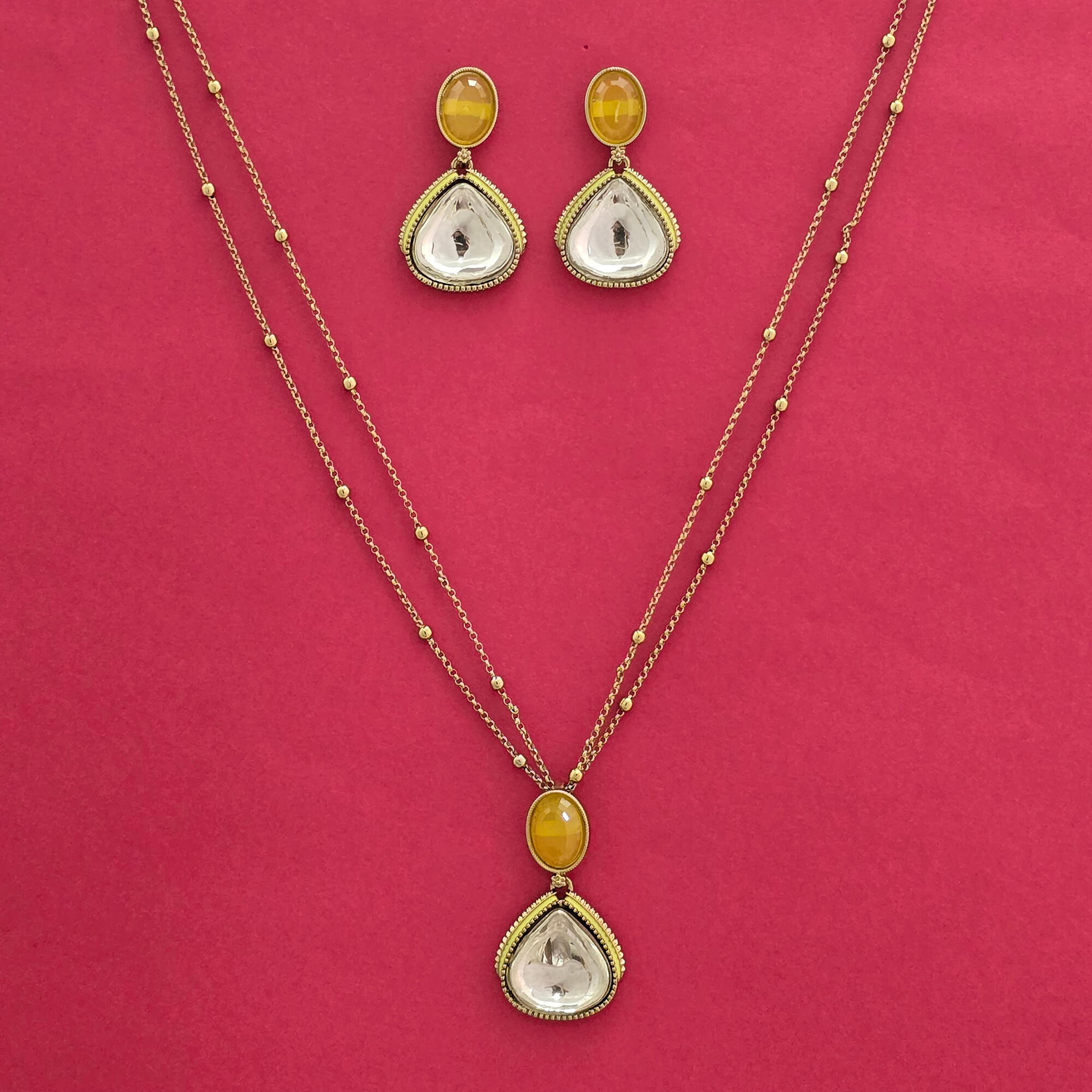 Kanhai Jewels offers an exclusive collection of finest quality crafted Fashion Jewellery in various colors. We make sure that our collection of Indo Western Classic Pendant Set With Mehndi Plating are beautiful, elegent & will surely galvanize you, because our products are unique, comfortable, fashion forward & very popular for the rich look. Base Metal of our product is Alloy, i.e Mixing of Copper & Brass. We pack all the products using quality packaging material to ensure safe and secure transportation.