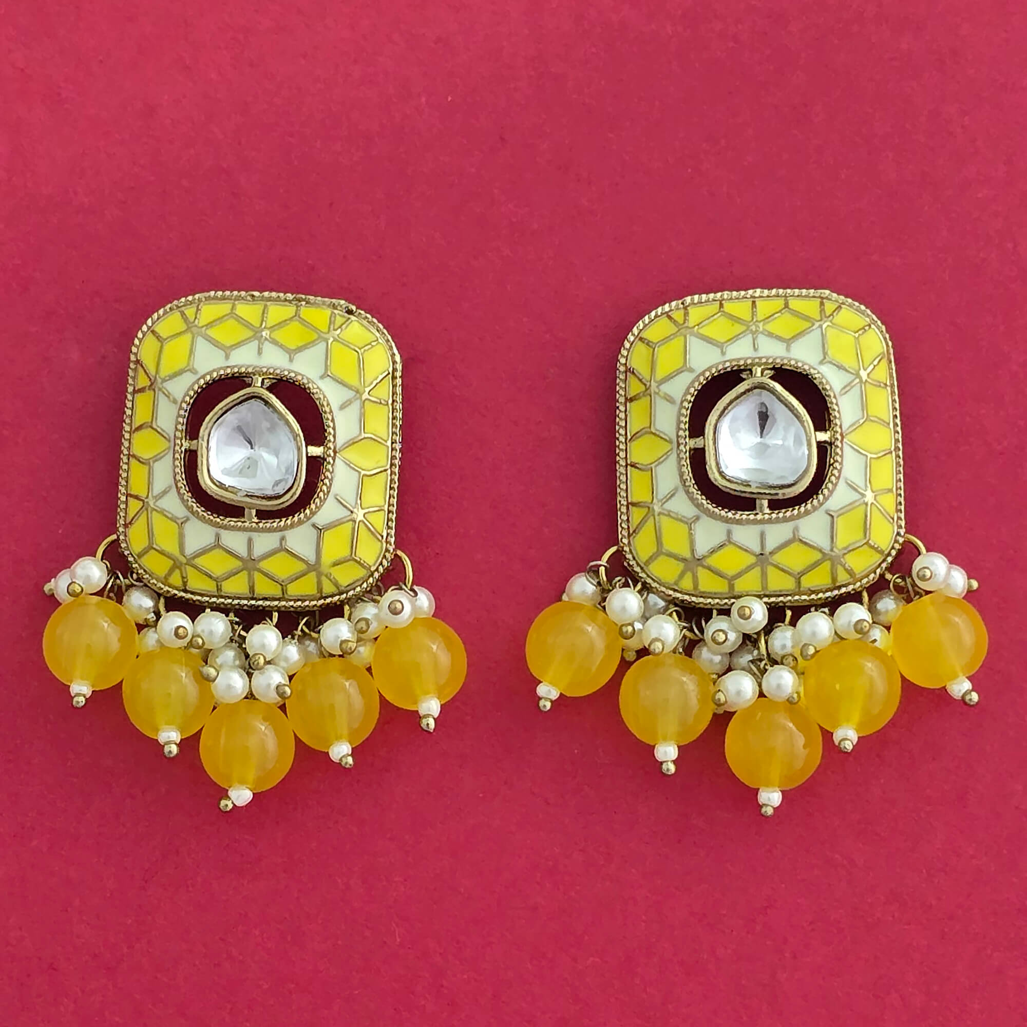 Home / Indo Western Earring / indo western meenakari earring with mehndi plating