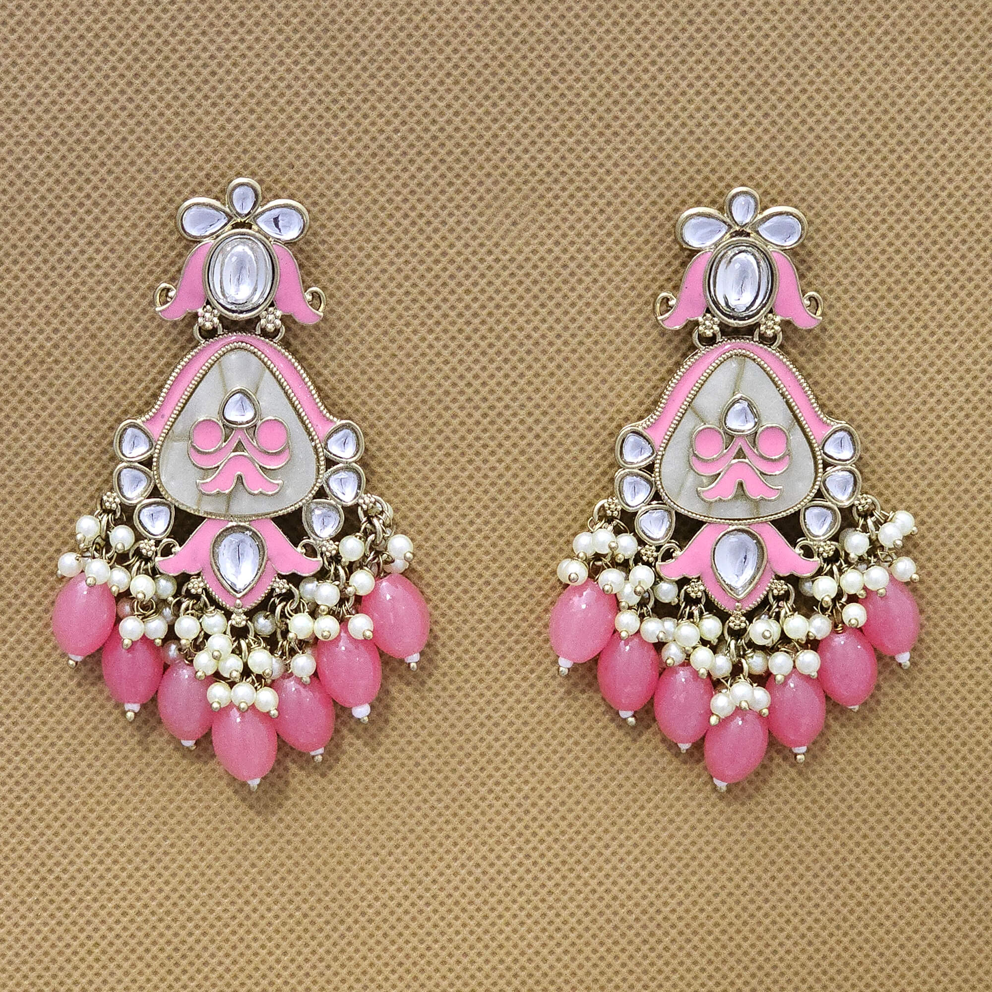 112103 Indo Western Mother Of Pearl Earring With Mehndi Plating