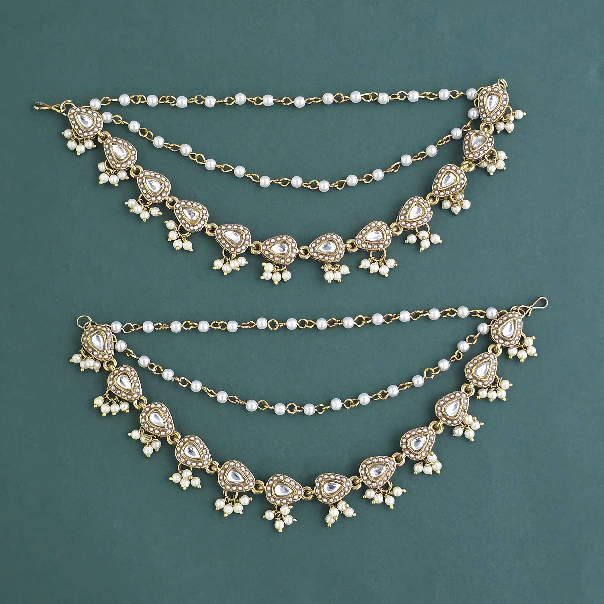 • Indo Western Moti Ear Chain With Mehndi Plating