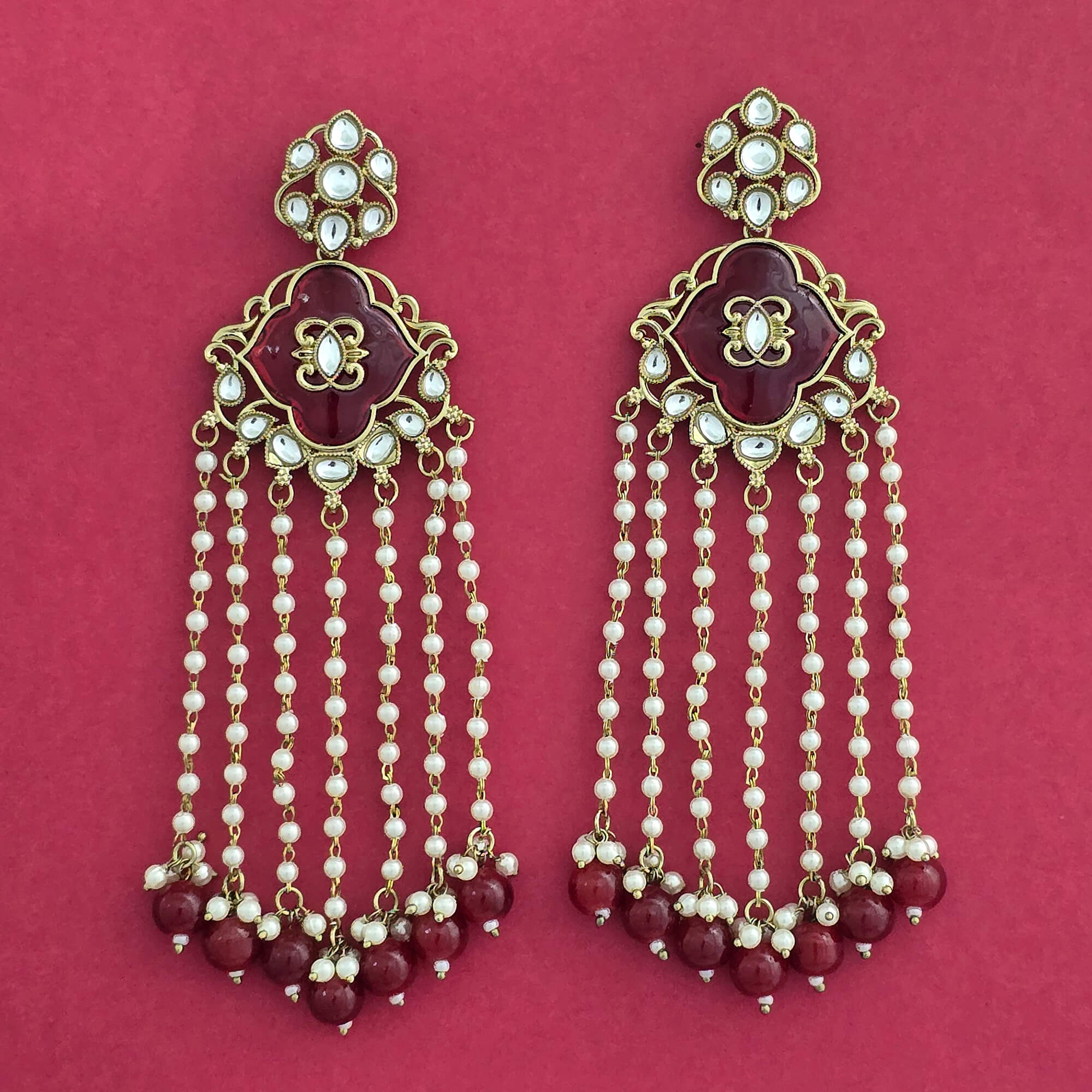 Home / Indo Western Earring / indo western moti earring with mehndi plating