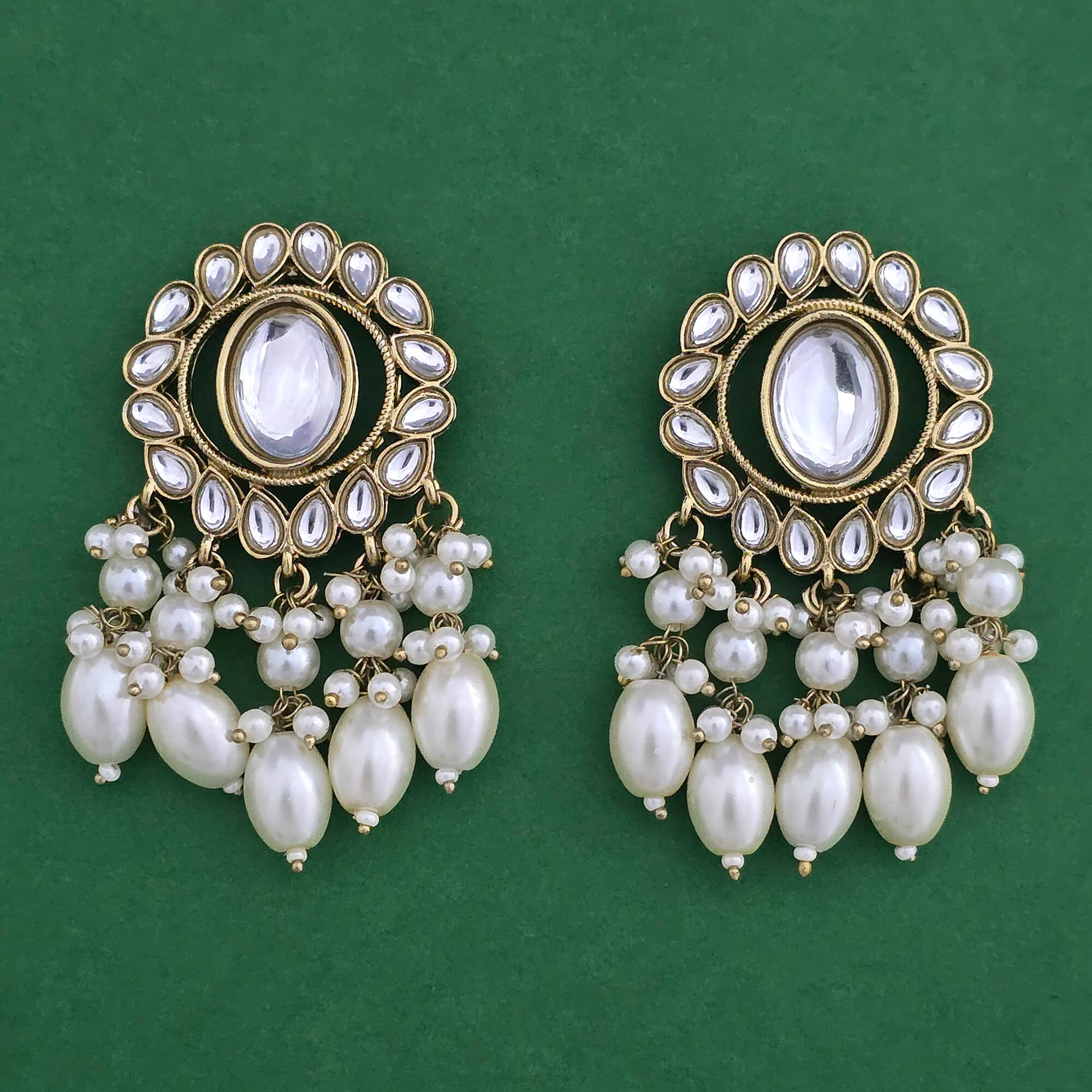 Home / Indo Western Earring / indo western moti earring with mehndi plating