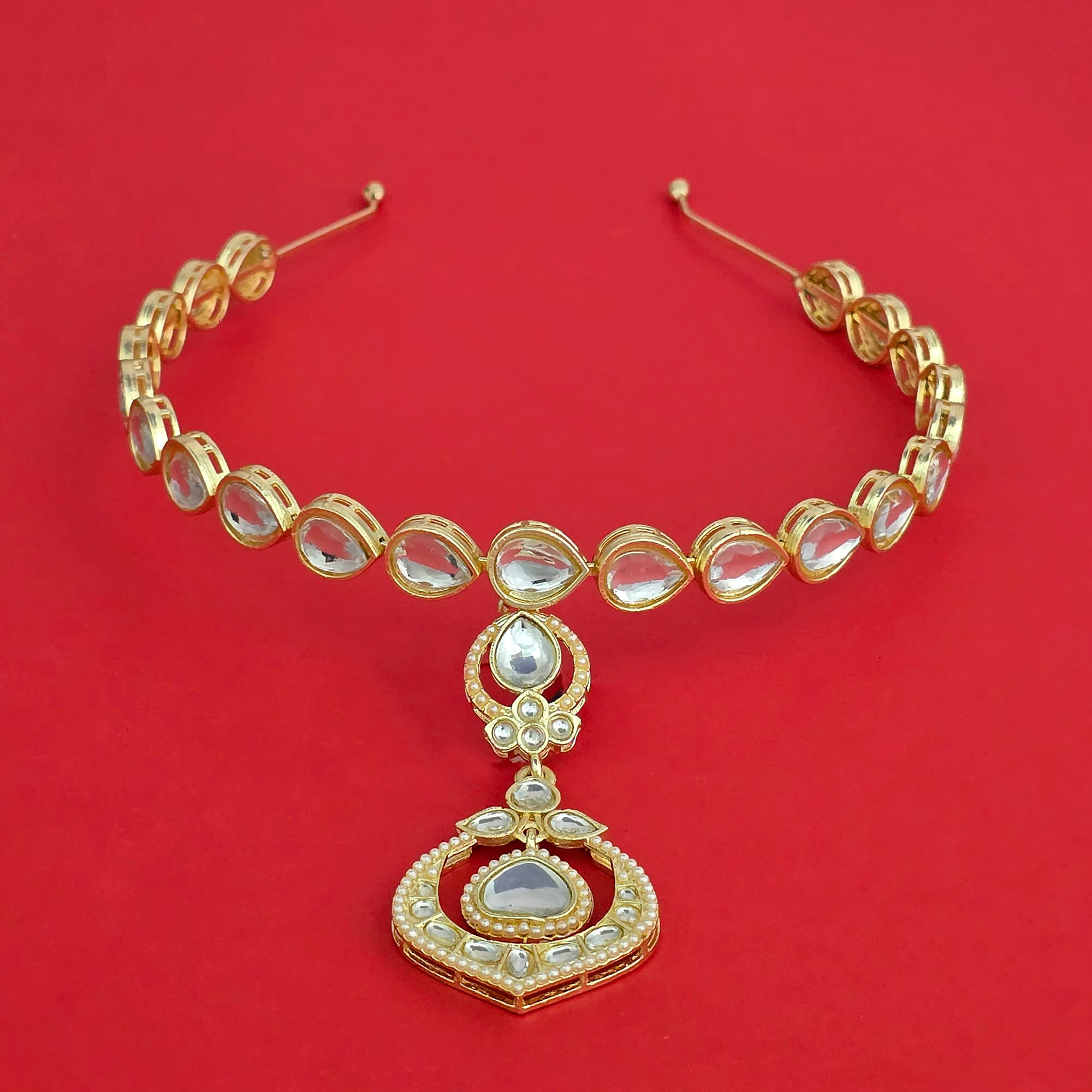 Kanhai Jewels offers an exclusive collection of finest quality crafted Fashion Jewellery in various colors. We make sure that our collection of Indo Western Moti Hair Band With Gold Plating are beautiful, elegent & will surely galvanize you, because our products are unique, comfortable, fashion forward & very popular for the rich look. Base Metal of our product is Alloy, i.e Mixing of Copper & Brass. We pack all the products using quality packaging material to ensure safe and secure transportation.