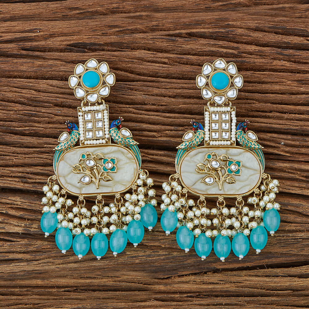111040 Indo Western Peacock Earring With Mehndi Plating