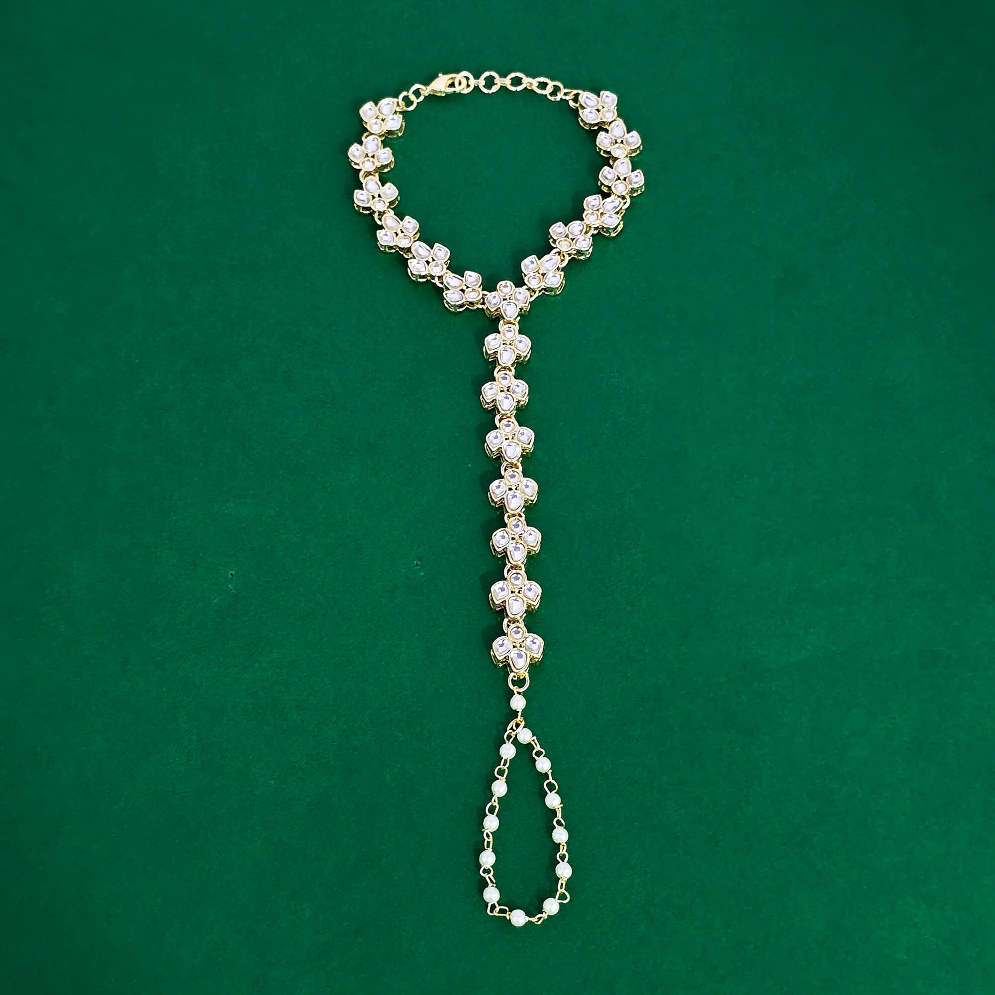 Kanhai Jewels offers an exclusive collection of finest quality crafted Fashion Jewellery in various colors. We make sure that our collection of Indo Western Pearl Hath Pan With Gold Plating are beautiful, elegent & will surely galvanize you, because our products are unique, comfortable, fashion forward & very popular for the rich look. Base Metal of our product is Alloy, i.e Mixing of Copper & Brass. We pack all the products using quality packaging material to ensure safe and secure transportation.