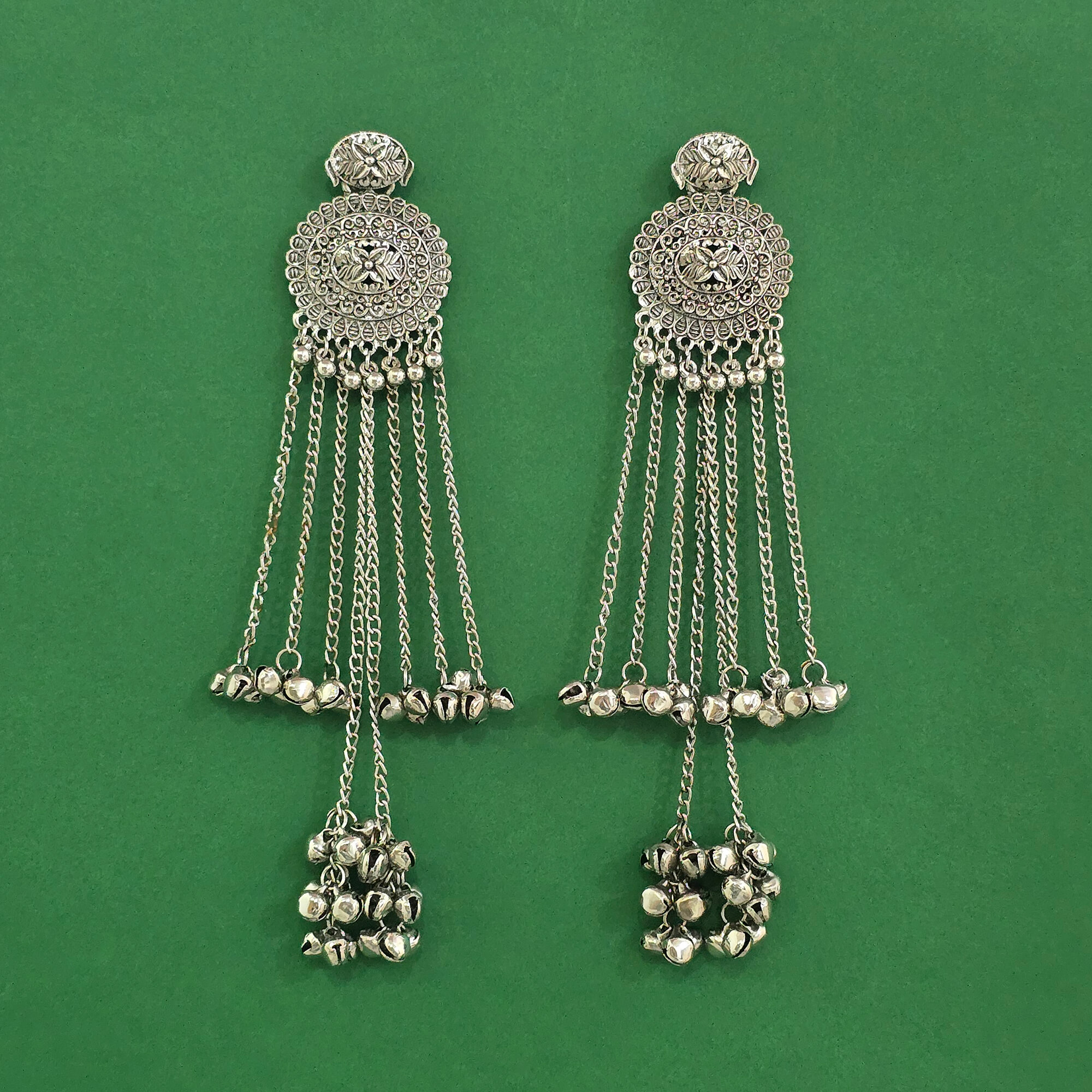 Home / Oxidised Earring / kashmiri earring with rhodium plating