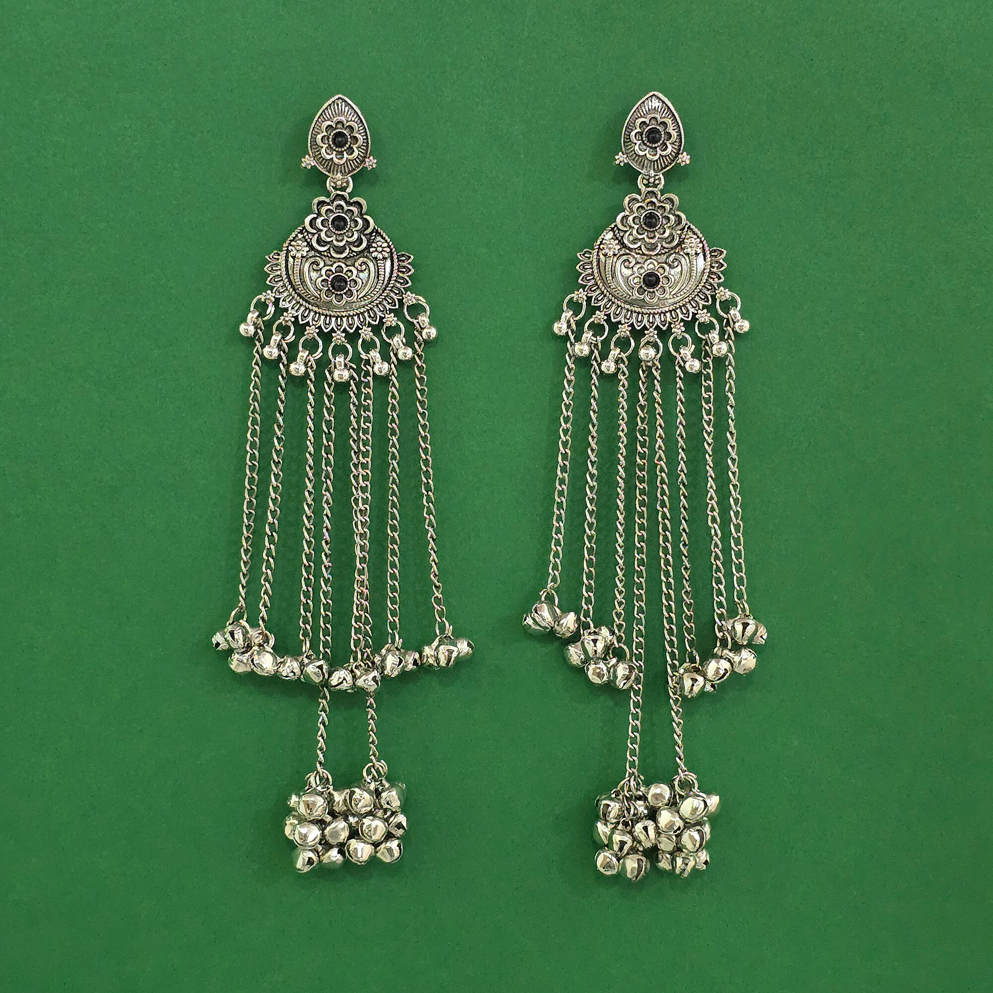 Home / Oxidised Earring / kashmiri earring with rhodium plating
