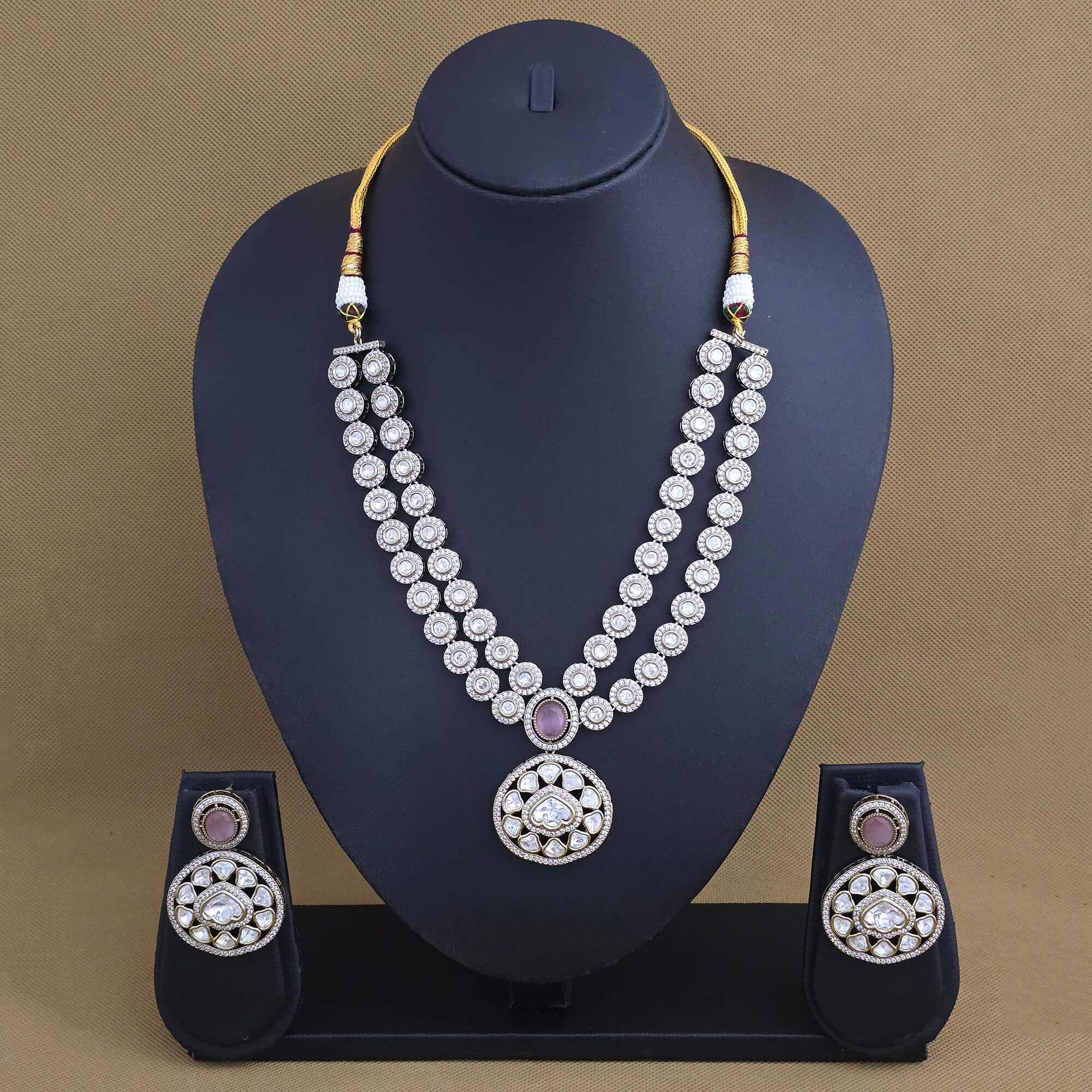 Kanhai Jewels offers an exclusive collection of finest quality crafted Fashion Jewellery in various colors. We make sure that our collection of Kundan 2 Line Necklace Set With Mehndi Plating are beautiful, elegent & will surely galvanize you, because our products are unique, comfortable, fashion forward & very popular for the rich look. Base Metal of our product is Alloy, i.e Mixing of Copper & Brass. We pack all the products using quality packaging material to ensure safe and secure transportation.