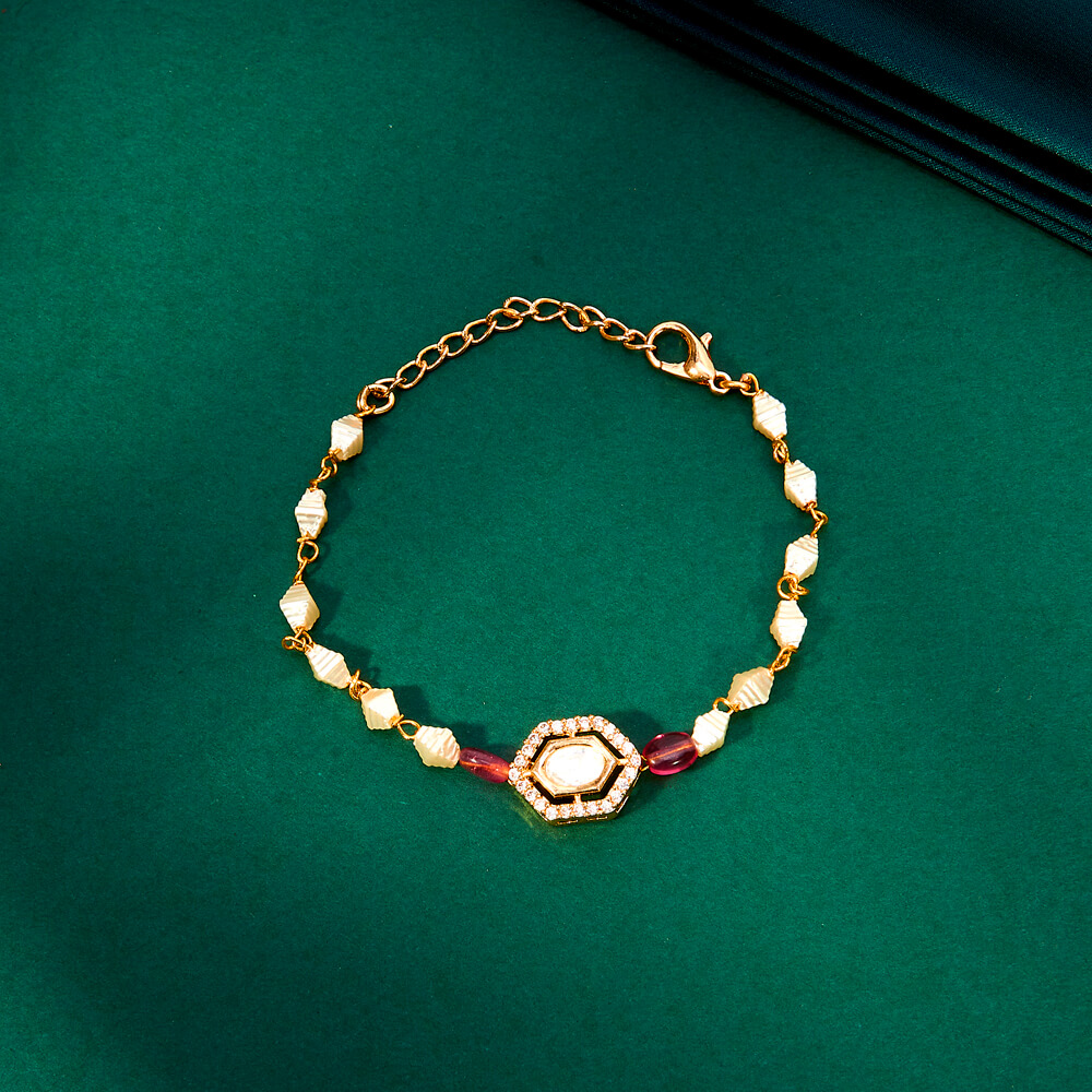 Kanhai Jewels offers an exclusive collection of finest quality crafted Fashion Jewellery in various colors. We make sure that our collection of Kundan Adjustable Bracelet With Gold Plating are beautiful, elegent & will surely galvanize you, because our products are unique, comfortable, fashion forward & very popular for the rich look. Base Metal of our product is Alloy, i.e Mixing of Copper & Brass. We pack all the products using quality packaging material to ensure safe and secure transportation.