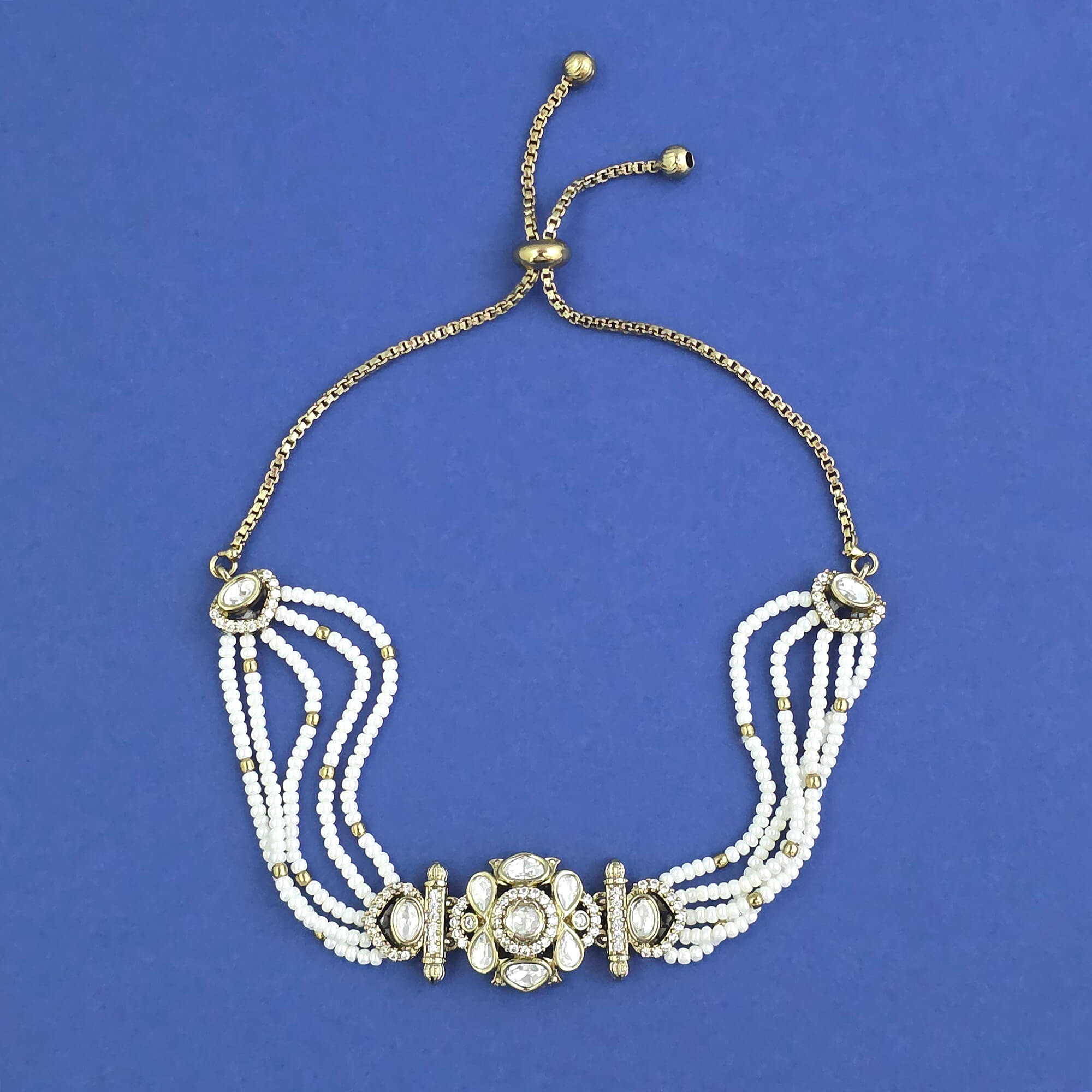 • Kundan Adjustable Bracelet With Mehndi Plating