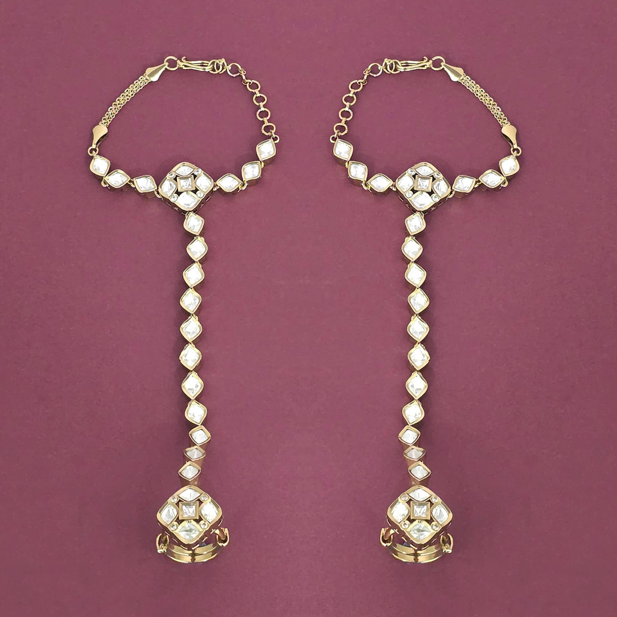 Kanhai Jewels offers an exclusive collection of finest quality crafted Fashion Jewellery in various colors. We make sure that our collection of Kundan Adjustable Hath Pan With Mehndi Plating are beautiful, elegent & will surely galvanize you, because our products are unique, comfortable, fashion forward & very popular for the rich look. Base Metal of our product is Alloy, i.e Mixing of Copper & Brass. We pack all the products using quality packaging material to ensure safe and secure transportation.