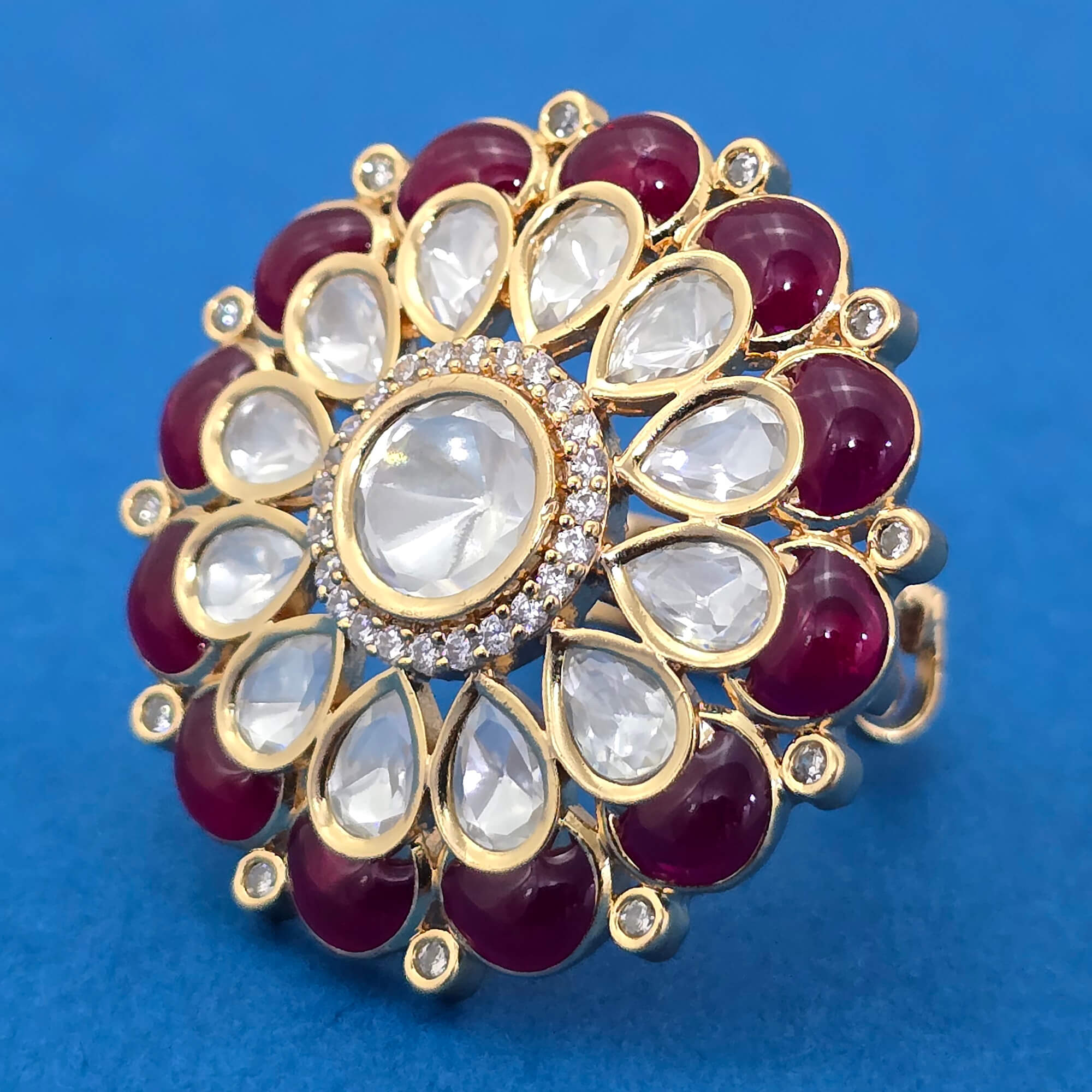 303122 Kundan Adjustable Ring With Carat Gold Plating