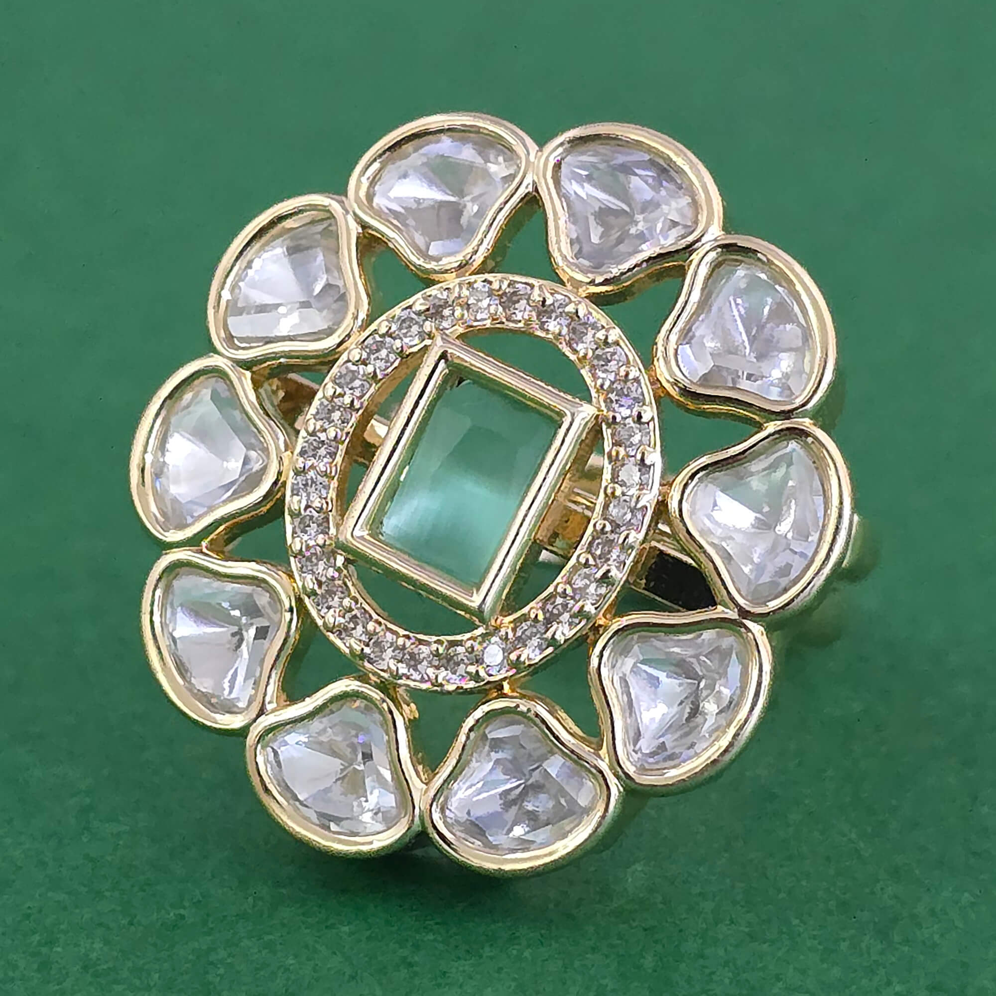303511 Kundan Adjustable Ring With Carat Gold Plating