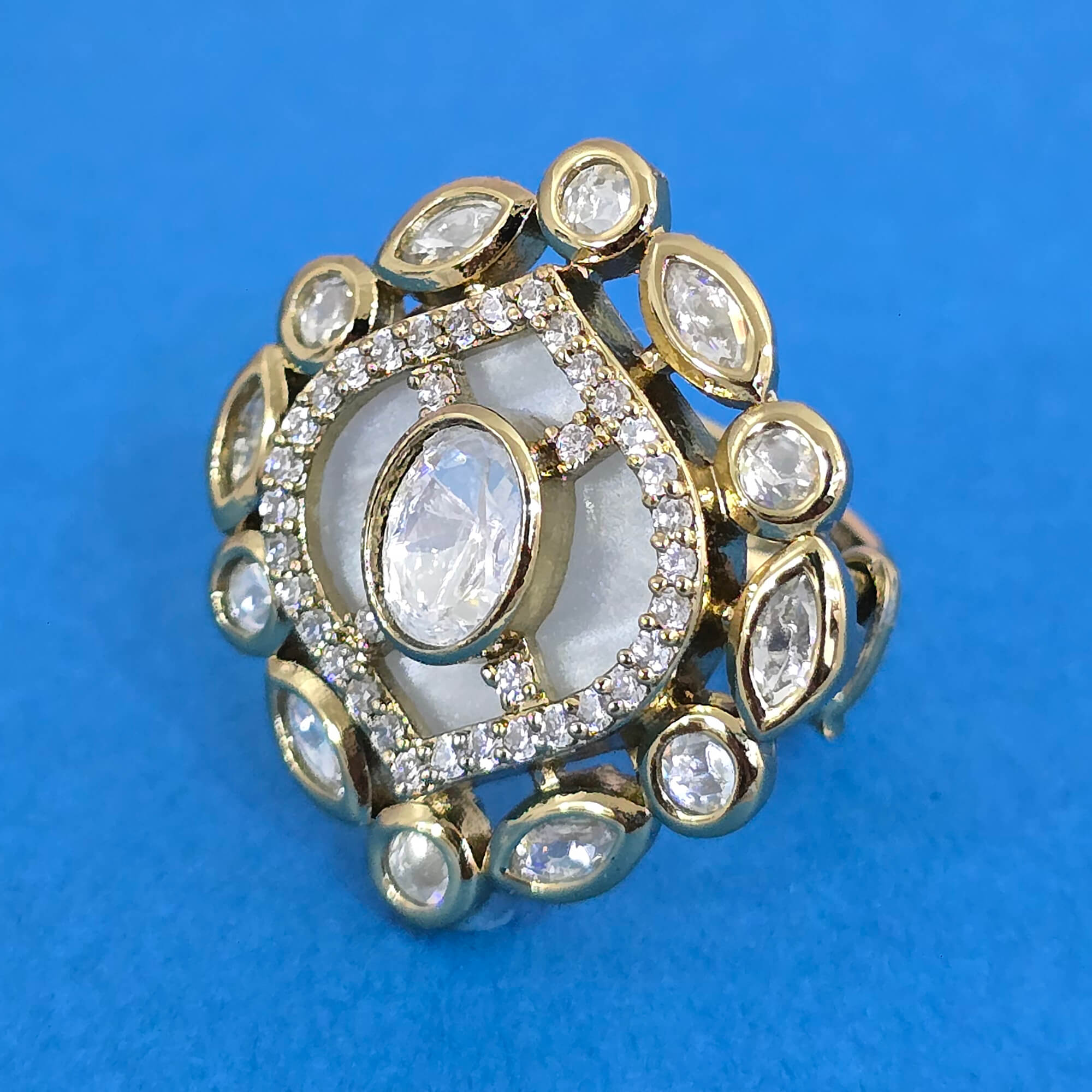 352404 Kundan Adjustable Ring With Carat Mehndi Plating