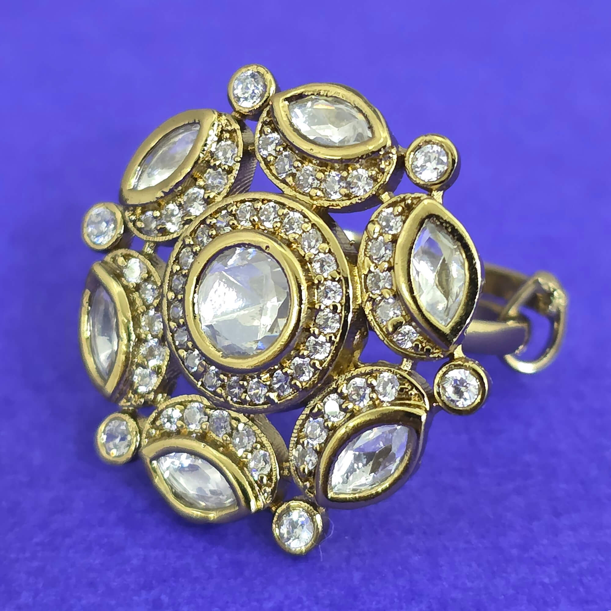 352707 Kundan Adjustable Ring With Carat Mehndi Plating