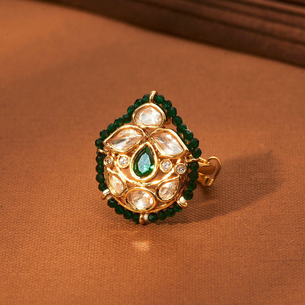Kanhai Jewels offers an exclusive collection of finest quality crafted Fashion Jewellery in various colors. We make sure that our collection of Kundan Adjustable Ring With Gold Plating are beautiful, elegent & will surely galvanize you, because our products are unique, comfortable, fashion forward & very popular for the rich look. Base Metal of our product is Alloy, i.e Mixing of Copper & Brass. We pack all the products using quality packaging material to ensure safe and secure transportation.