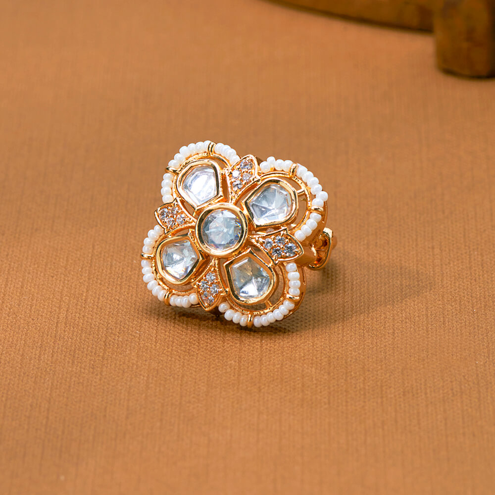 Home / Kundan Finger Ring / kundan adjustable ring with rose gold plating