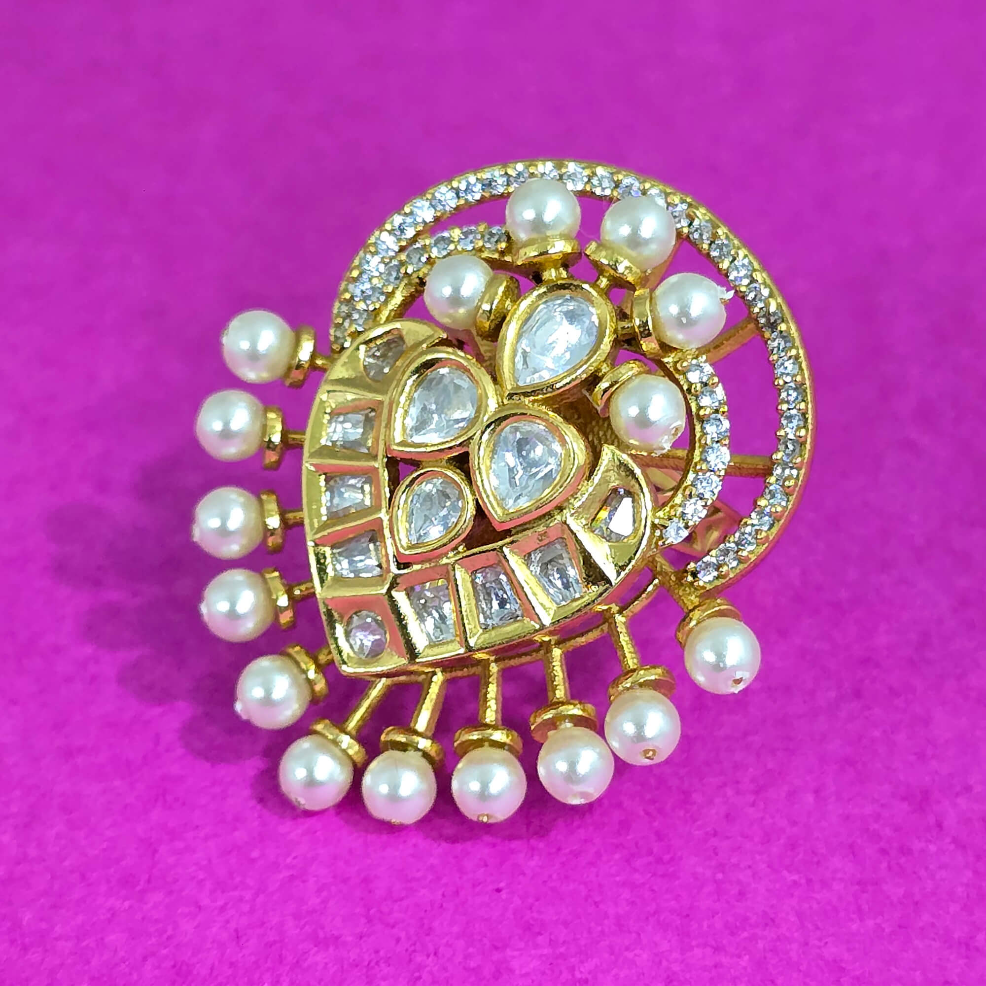Kanhai Jewels offers an exclusive collection of finest quality crafted Fashion Jewellery in various colors. We make sure that our collection of Kundan Adjustable Ring With Victorian Plating are beautiful, elegent & will surely galvanize you, because our products are unique, comfortable, fashion forward & very popular for the rich look. Base Metal of our product is Alloy, i.e Mixing of Copper & Brass. We pack all the products using quality packaging material to ensure safe and secure transportation.