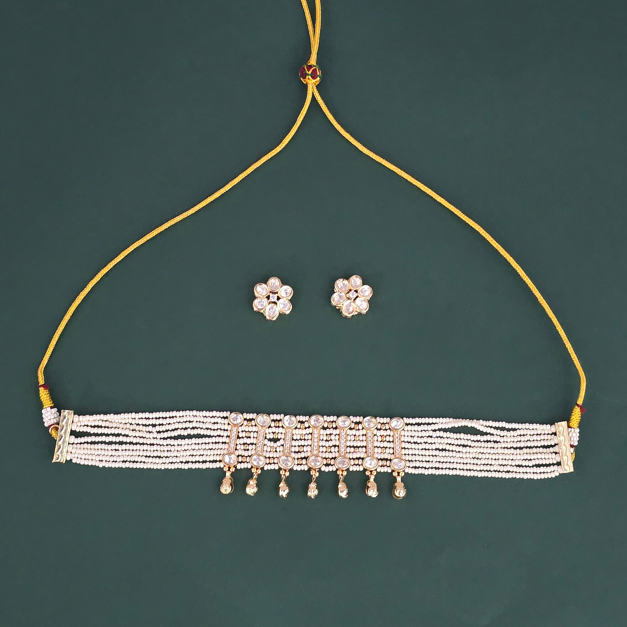 • Kundan Choker Necklace Set With Carat Gold Plating