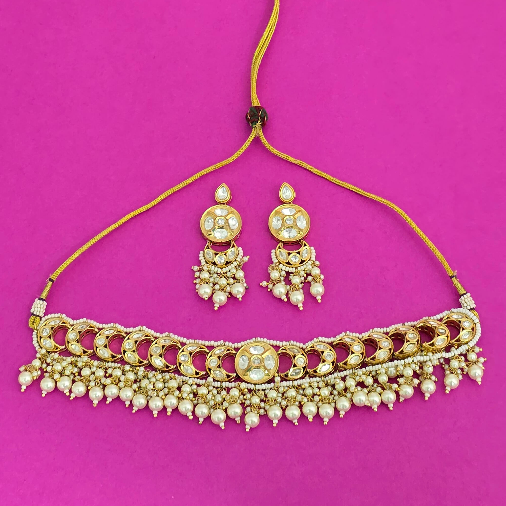 Home / Kundan Necklace / kundan choker necklace with gold plating