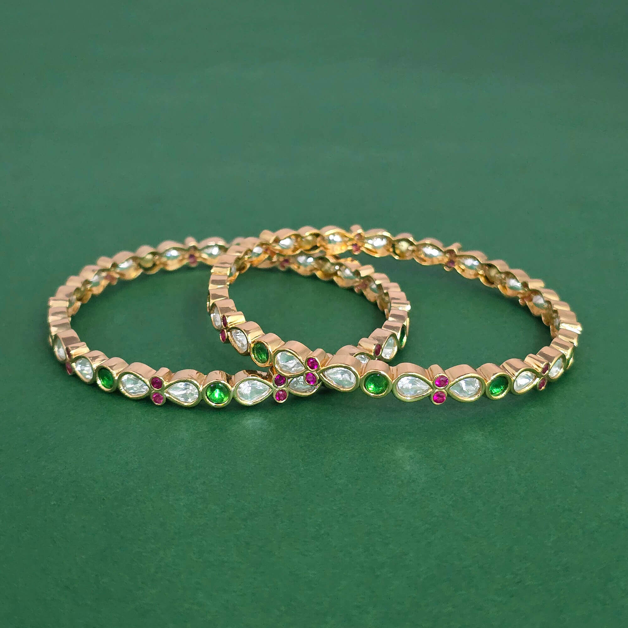 Kanhai Jewels offers an exclusive collection of finest quality crafted Fashion Jewellery in various colors. We make sure that our collection of Kundan Classic Bangles With Carat Gold Plating are beautiful, elegent & will surely galvanize you, because our products are unique, comfortable, fashion forward & very popular for the rich look. Base Metal of our product is Alloy, i.e Mixing of Copper & Brass. We pack all the products using quality packaging material to ensure safe and secure transportation.