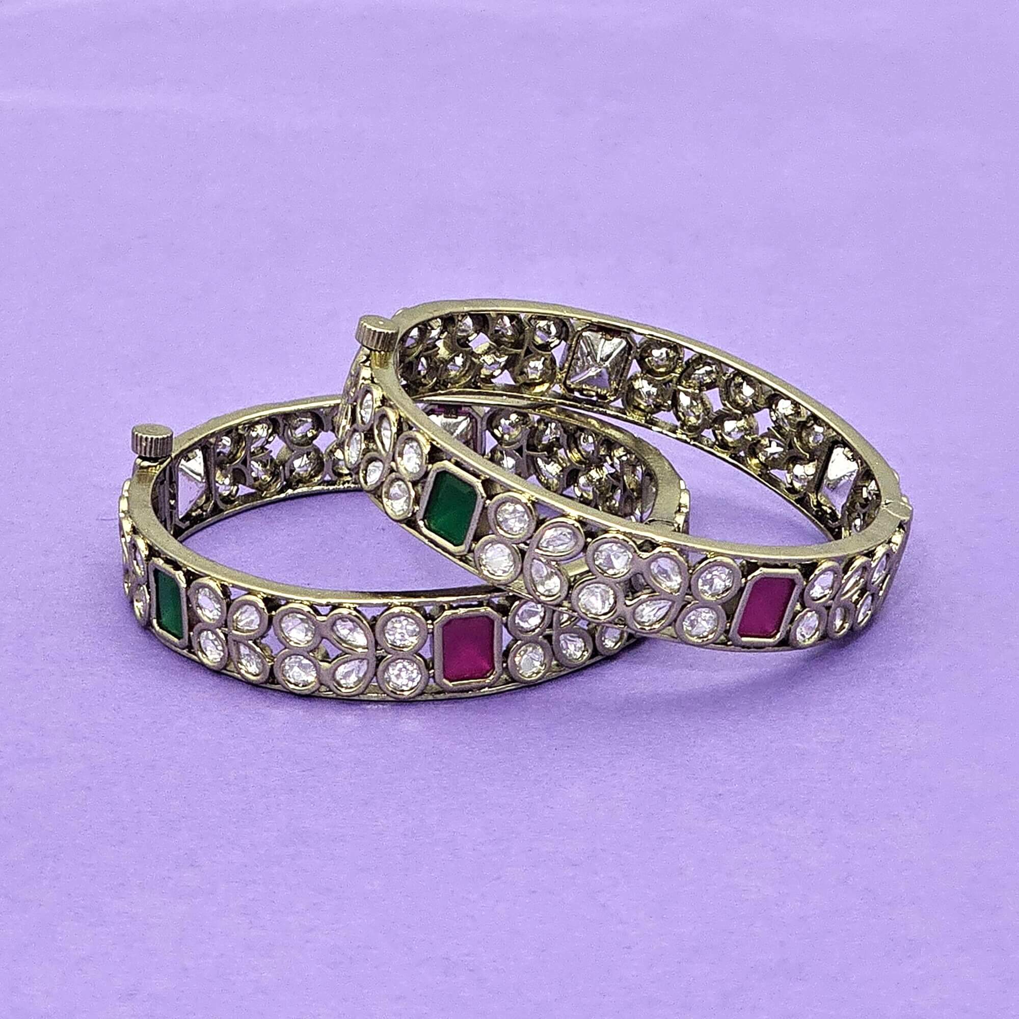 Kanhai Jewels offers an exclusive collection of finest quality crafted Fashion Jewellery in various colors. We make sure that our collection of Kundan Classic Bangles With Mehndi Plating are beautiful, elegent & will surely galvanize you, because our products are unique, comfortable, fashion forward & very popular for the rich look. Base Metal of our product is Alloy, i.e Mixing of Copper & Brass. We pack all the products using quality packaging material to ensure safe and secure transportation.