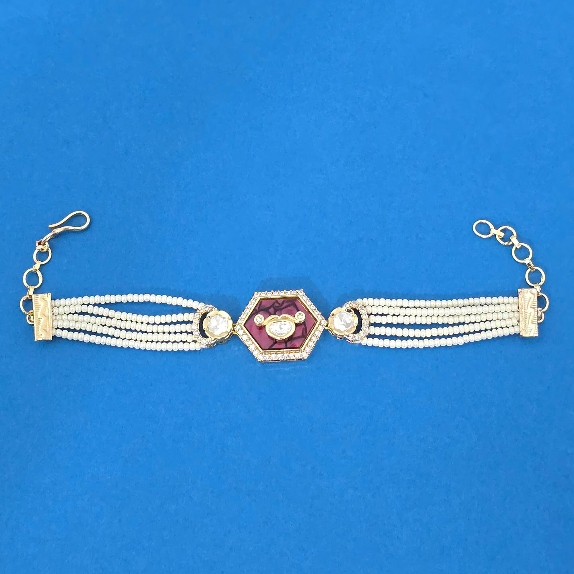 Kanhai Jewels offers an exclusive collection of finest quality crafted Fashion Jewellery in various colors. We make sure that our collection of Kundan Classic Bracelet With Carat Plating are beautiful, elegent & will surely galvanize you, because our products are unique, comfortable, fashion forward & very popular for the rich look. Base Metal of our product is Alloy, i.e Mixing of Copper & Brass. We pack all the products using quality packaging material to ensure safe and secure transportation.