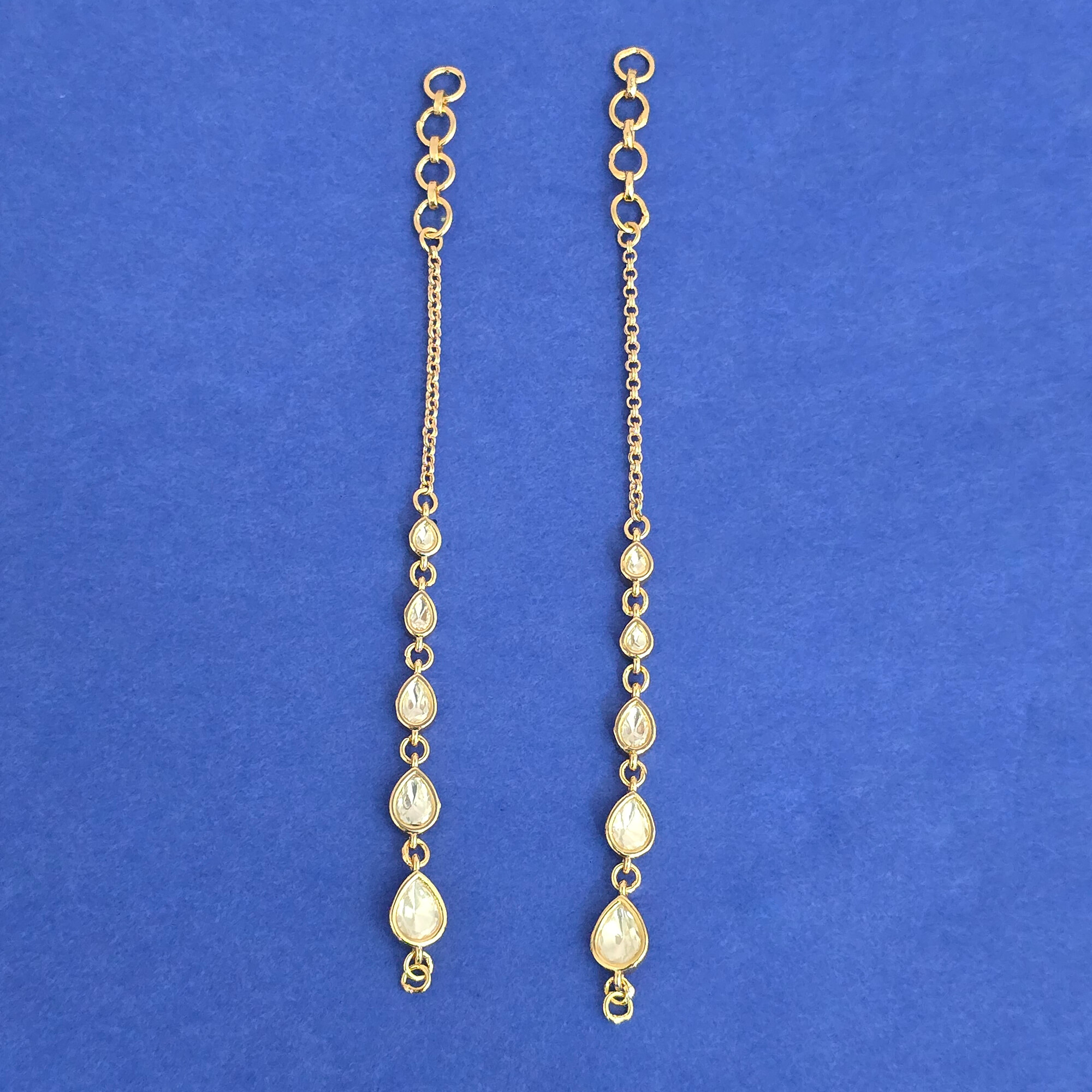 Kanhai Jewels offers an exclusive collection of finest quality crafted Fashion Jewellery in various colors. We make sure that our collection of Kundan Classic Ear Chain With Carat Gold Plating are beautiful, elegent & will surely galvanize you, because our products are unique, comfortable, fashion forward & very popular for the rich look. Base Metal of our product is Alloy, i.e Mixing of Copper & Brass. We pack all the products using quality packaging material to ensure safe and secure transportation.