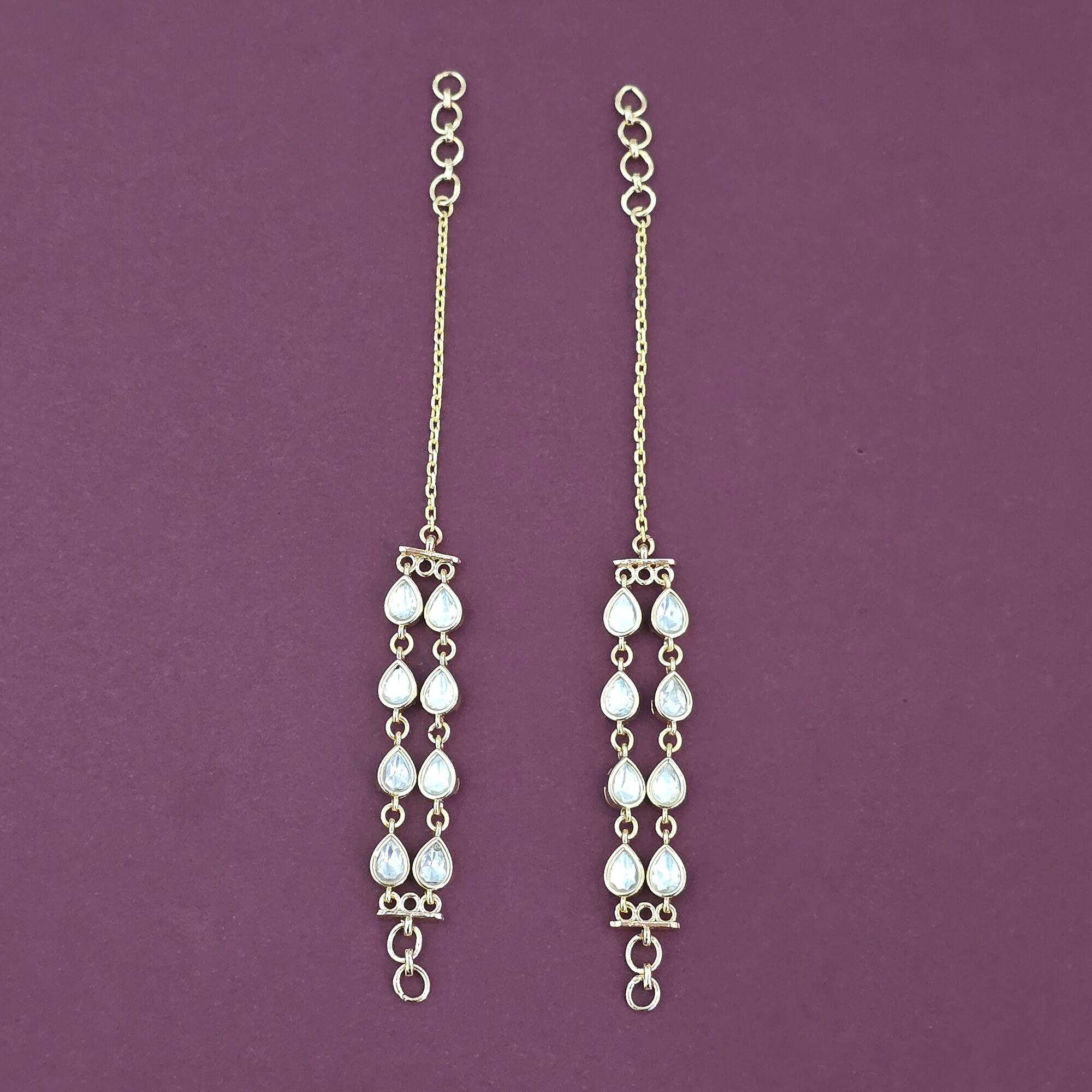 Kanhai Jewels offers an exclusive collection of finest quality crafted Fashion Jewellery in various colors. We make sure that our collection of Kundan Classic Ear Chain With Carat Gold Plating are beautiful, elegent & will surely galvanize you, because our products are unique, comfortable, fashion forward & very popular for the rich look. Base Metal of our product is Alloy, i.e Mixing of Copper & Brass. We pack all the products using quality packaging material to ensure safe and secure transportation.