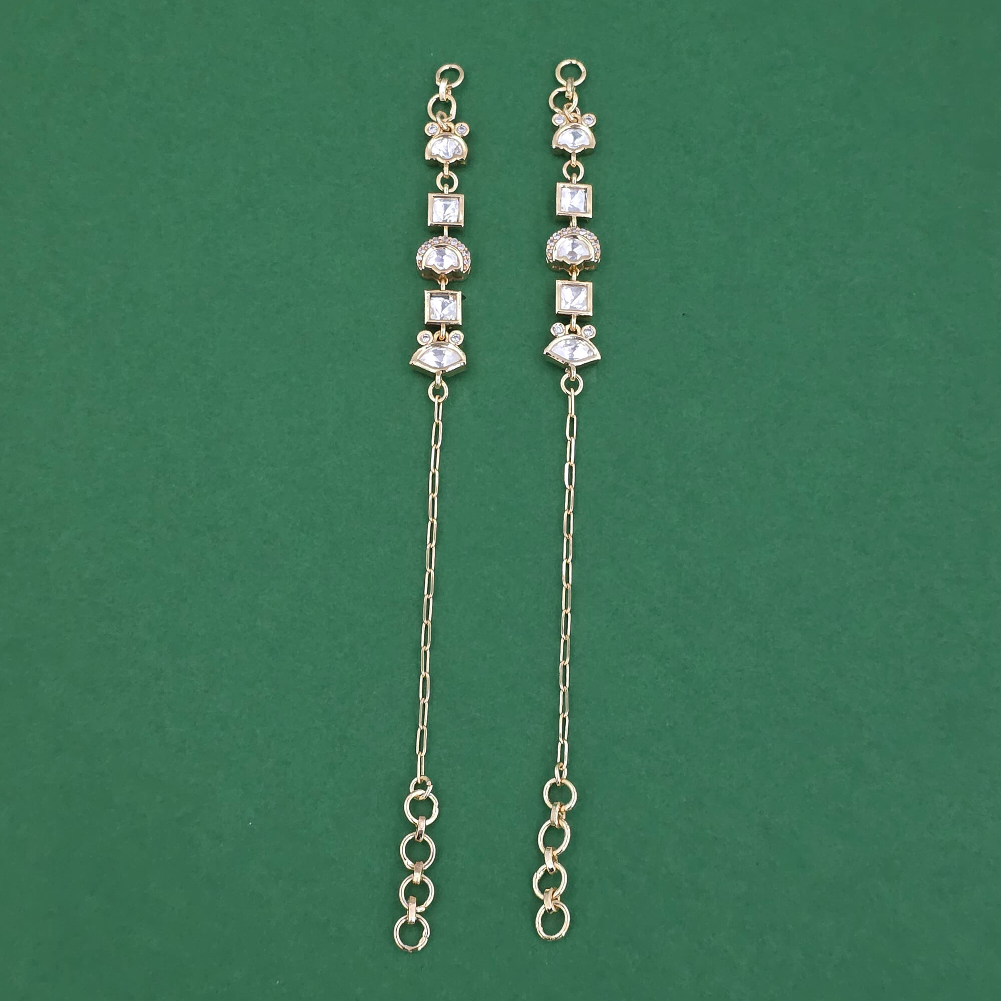 Kanhai Jewels offers an exclusive collection of finest quality crafted Fashion Jewellery in various colors. We make sure that our collection of Kundan Classic Ear Chain With Carat Gold Plating are beautiful, elegent & will surely galvanize you, because our products are unique, comfortable, fashion forward & very popular for the rich look. Base Metal of our product is Alloy, i.e Mixing of Copper & Brass. We pack all the products using quality packaging material to ensure safe and secure transportation.