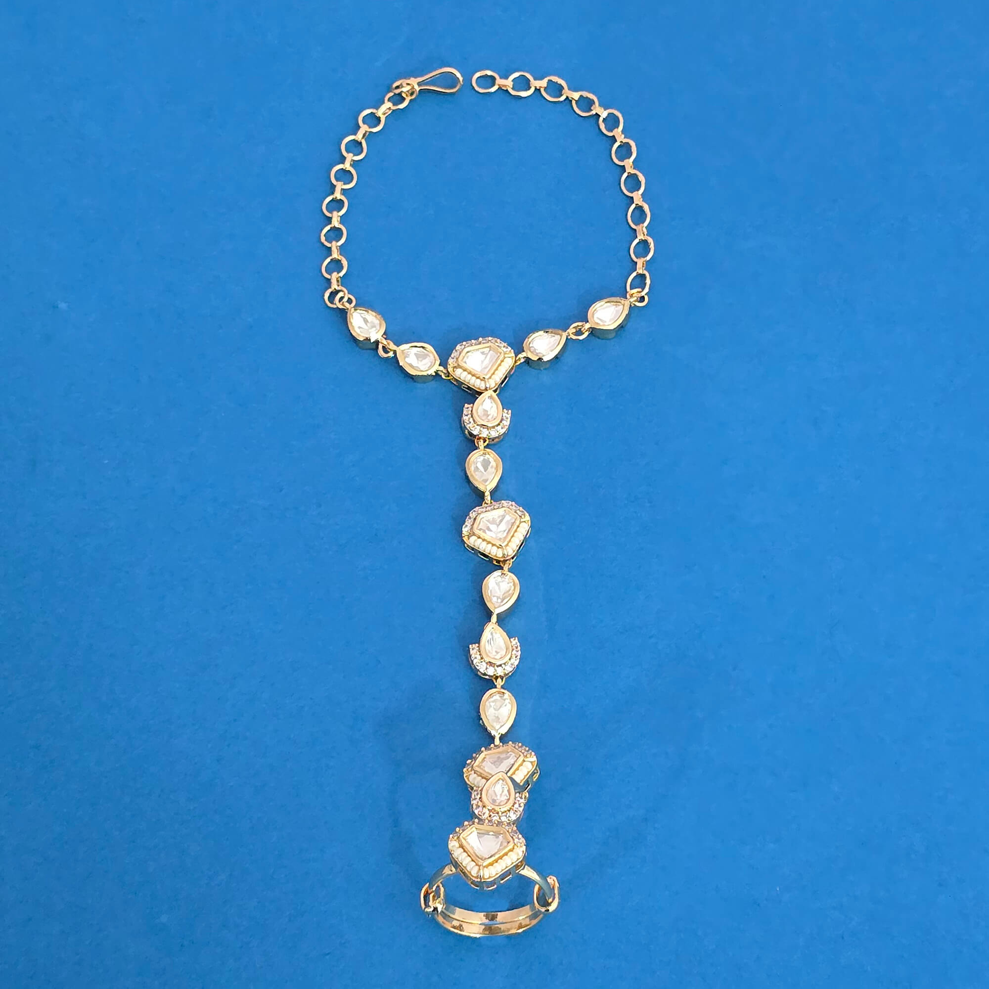 Kanhai Jewels offers an exclusive collection of finest quality crafted Fashion Jewellery in various colors. We make sure that our collection of Kundan Classic Hath Pan With Carat Gold Plating are beautiful, elegent & will surely galvanize you, because our products are unique, comfortable, fashion forward & very popular for the rich look. Base Metal of our product is Alloy, i.e Mixing of Copper & Brass. We pack all the products using quality packaging material to ensure safe and secure transportation.