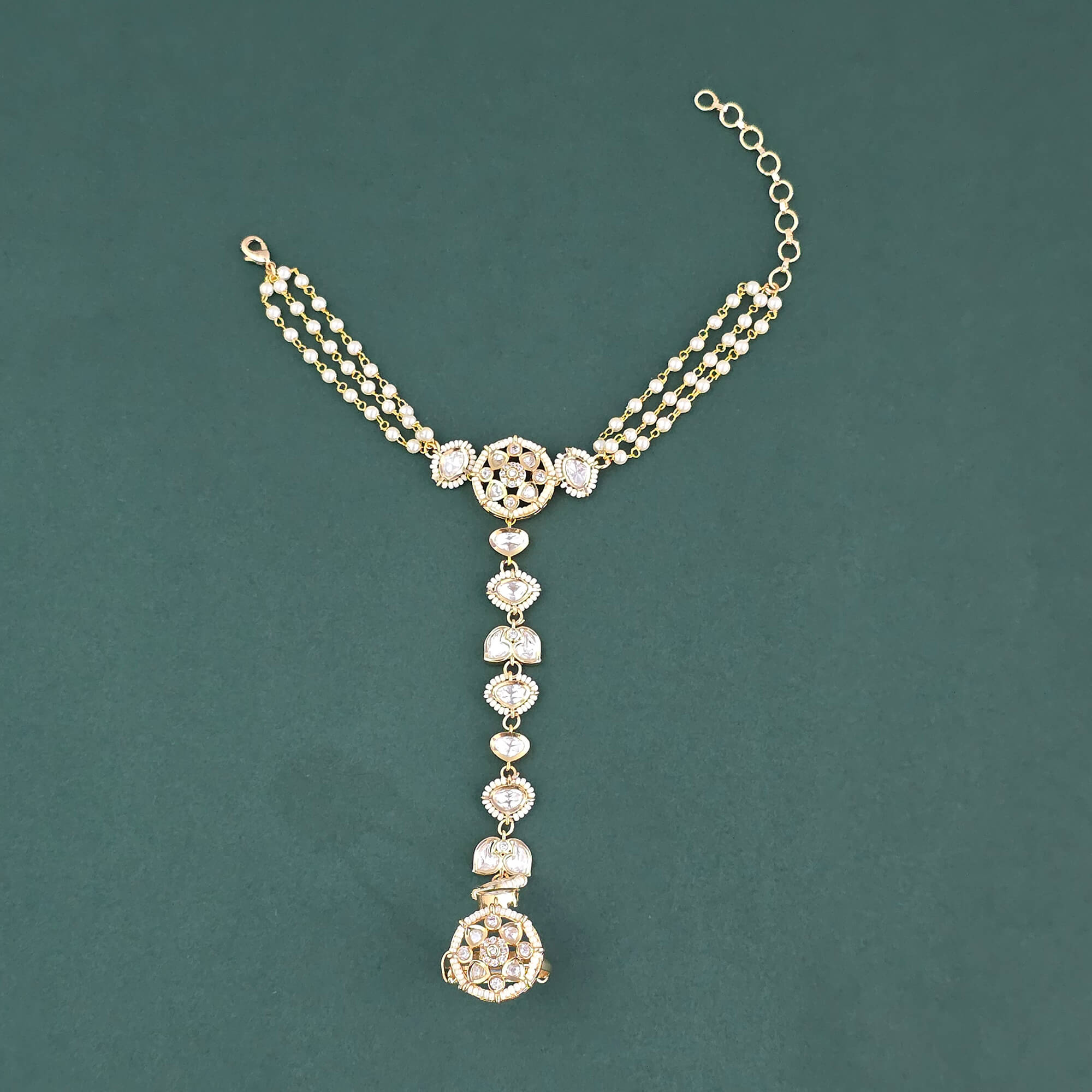 Kanhai Jewels offers an exclusive collection of finest quality crafted Fashion Jewellery in various colors. We make sure that our collection of Kundan Classic Hath Pan With Carat Gold Plating are beautiful, elegent & will surely galvanize you, because our products are unique, comfortable, fashion forward & very popular for the rich look. Base Metal of our product is Alloy, i.e Mixing of Copper & Brass. We pack all the products using quality packaging material to ensure safe and secure transportation.