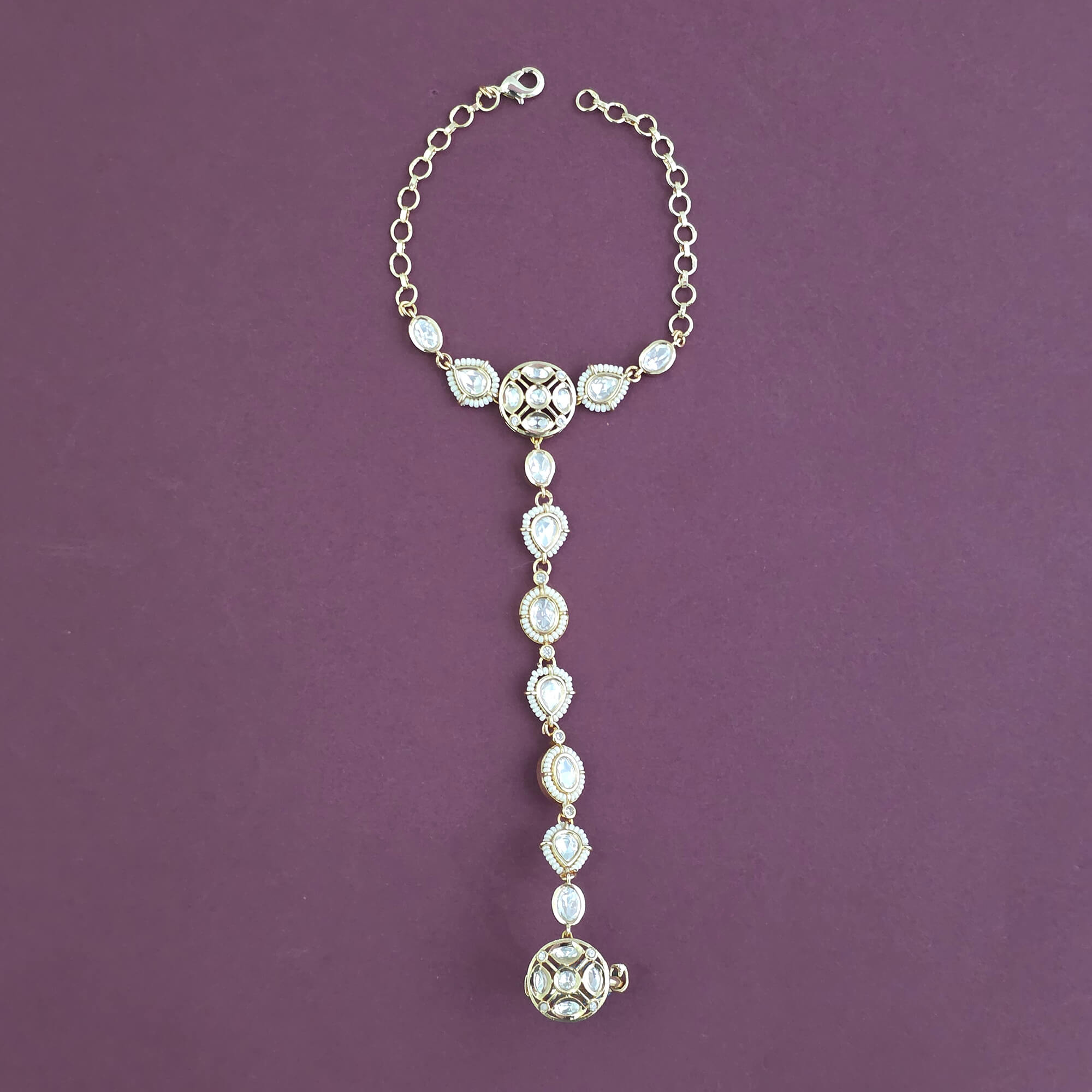 Kanhai Jewels offers an exclusive collection of finest quality crafted Fashion Jewellery in various colors. We make sure that our collection of Kundan Classic Hath Pan With Carat Gold Plating are beautiful, elegent & will surely galvanize you, because our products are unique, comfortable, fashion forward & very popular for the rich look. Base Metal of our product is Alloy, i.e Mixing of Copper & Brass. We pack all the products using quality packaging material to ensure safe and secure transportation.