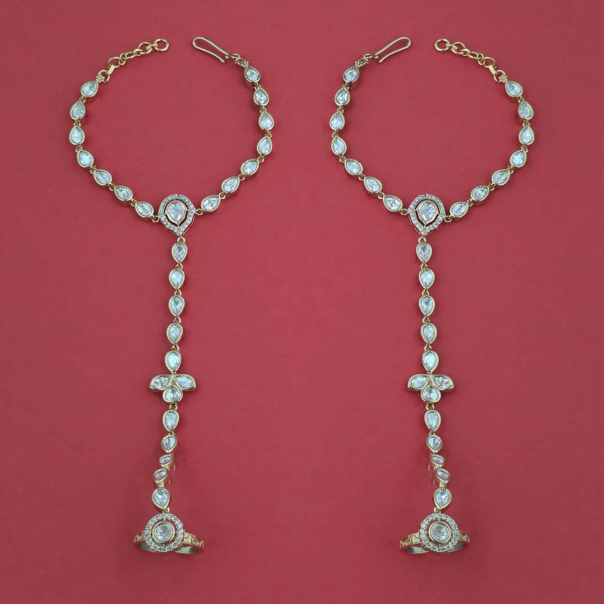 Kanhai Jewels offers an exclusive collection of finest quality crafted Fashion Jewellery in various colors. We make sure that our collection of Kundan Classic Hath Pan With Carat Plating are beautiful, elegant & will surely galvanize you, because our products are unique, comfortable, fashion forward & very popular for the rich look. Base Metal of our product is Alloy, i.e mixing of Copper & Brass. We pack all the products using quality packaging material to ensure safe and secure transportation.