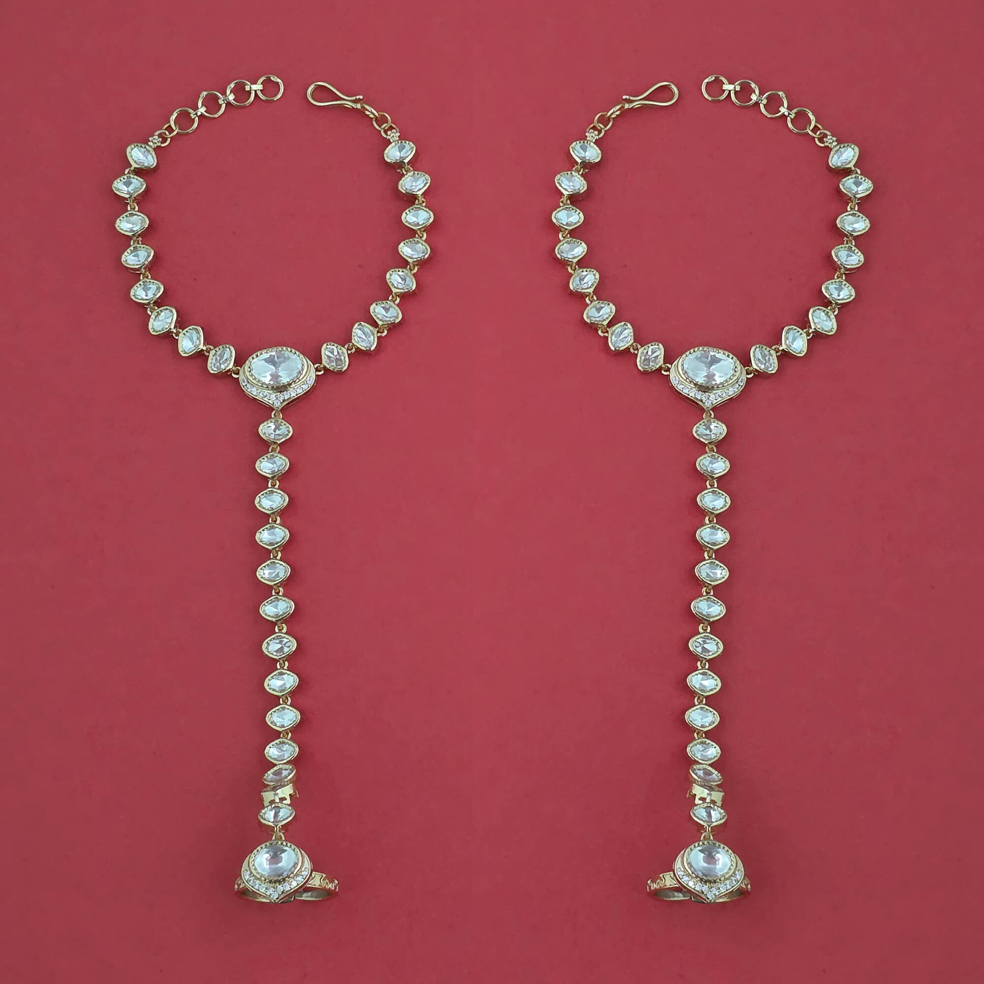 Kanhai Jewels offers an exclusive collection of finest quality crafted Fashion Jewellery in various colors. We make sure that our collection of Kundan Classic Hath Pan With Carat Plating are beautiful, elegant & will surely galvanize you, because our products are unique, comfortable, fashion forward & very popular for the rich look. Base Metal of our product is Alloy, i.e mixing of Copper & Brass. We pack all the products using quality packaging material to ensure safe and secure transportation.