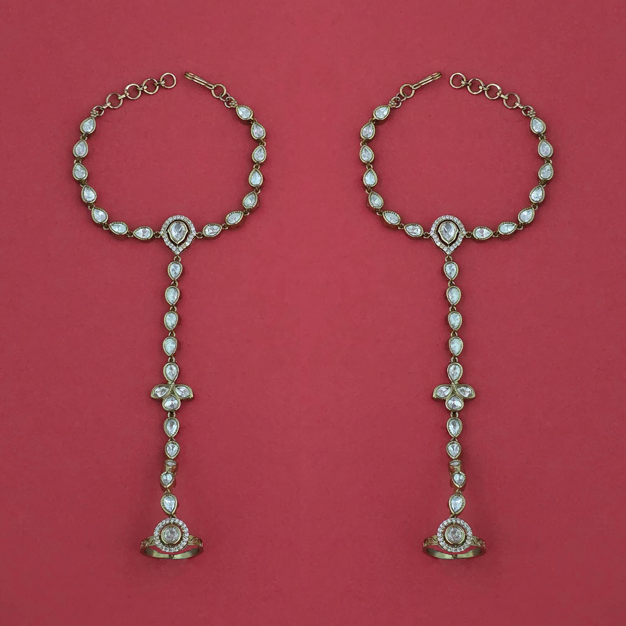 Kanhai Jewels offers an exclusive collection of finest quality crafted Fashion Jewellery in various colors. We make sure that our collection of Kundan Classic Hath Pan With Carat Plating are beautiful, elegant & will surely galvanize you, because our products are unique, comfortable, fashion forward & very popular for the rich look. Base Metal of our product is Alloy, i.e mixing of Copper & Brass. We pack all the products using quality packaging material to ensure safe and secure transportation.