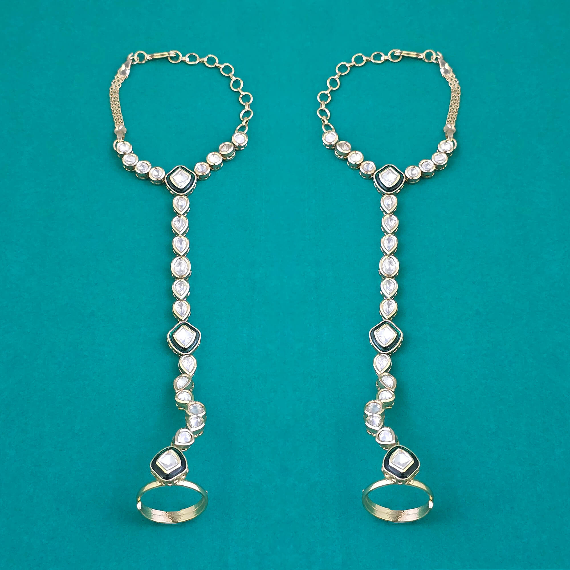Kanhai Jewels offers an exclusive collection of finest quality crafted Fashion Jewellery in various colors. We make sure that our collection of Kundan Classic Hath Pan With Carat Plating are beautiful, elegant & will surely galvanize you, because our products are unique, comfortable, fashion forward & very popular for the rich look. Base Metal of our product is Alloy, i.e mixing of Copper & Brass. We pack all the products using quality packaging material to ensure safe and secure transportation.