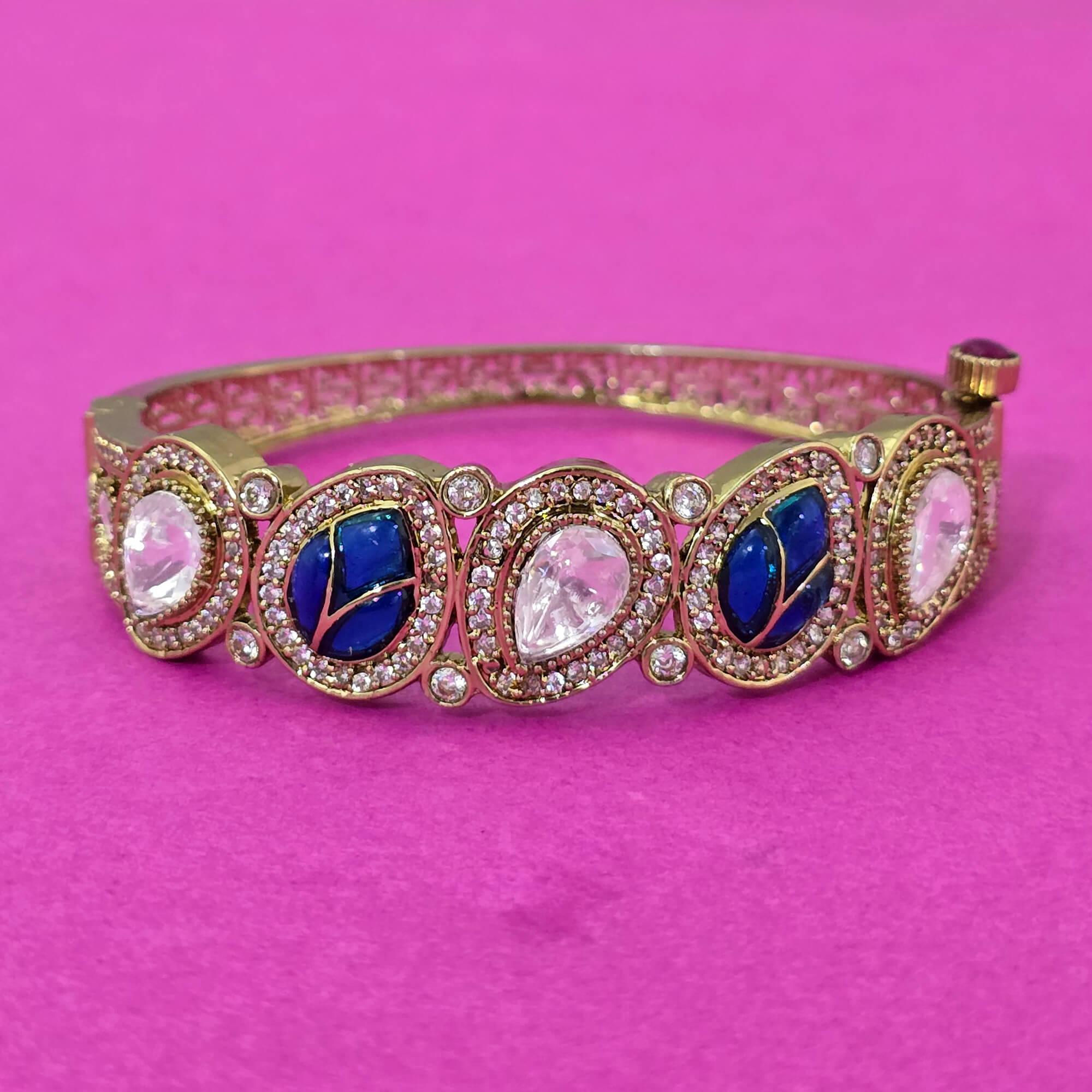 Kanhai Jewels offers an exclusive collection of finest quality crafted Fashion Jewellery in various colors. We make sure that our collection of Kundan Classic Kada With Mehndi Plating are beautiful, elegent & will surely galvanize you, because our products are unique, comfortable, fashion forward & very popular for the rich look. Base Metal of our product is Alloy, i.e Mixing of Copper & Brass. We pack all the products using quality packaging material to ensure safe and secure transportation.
