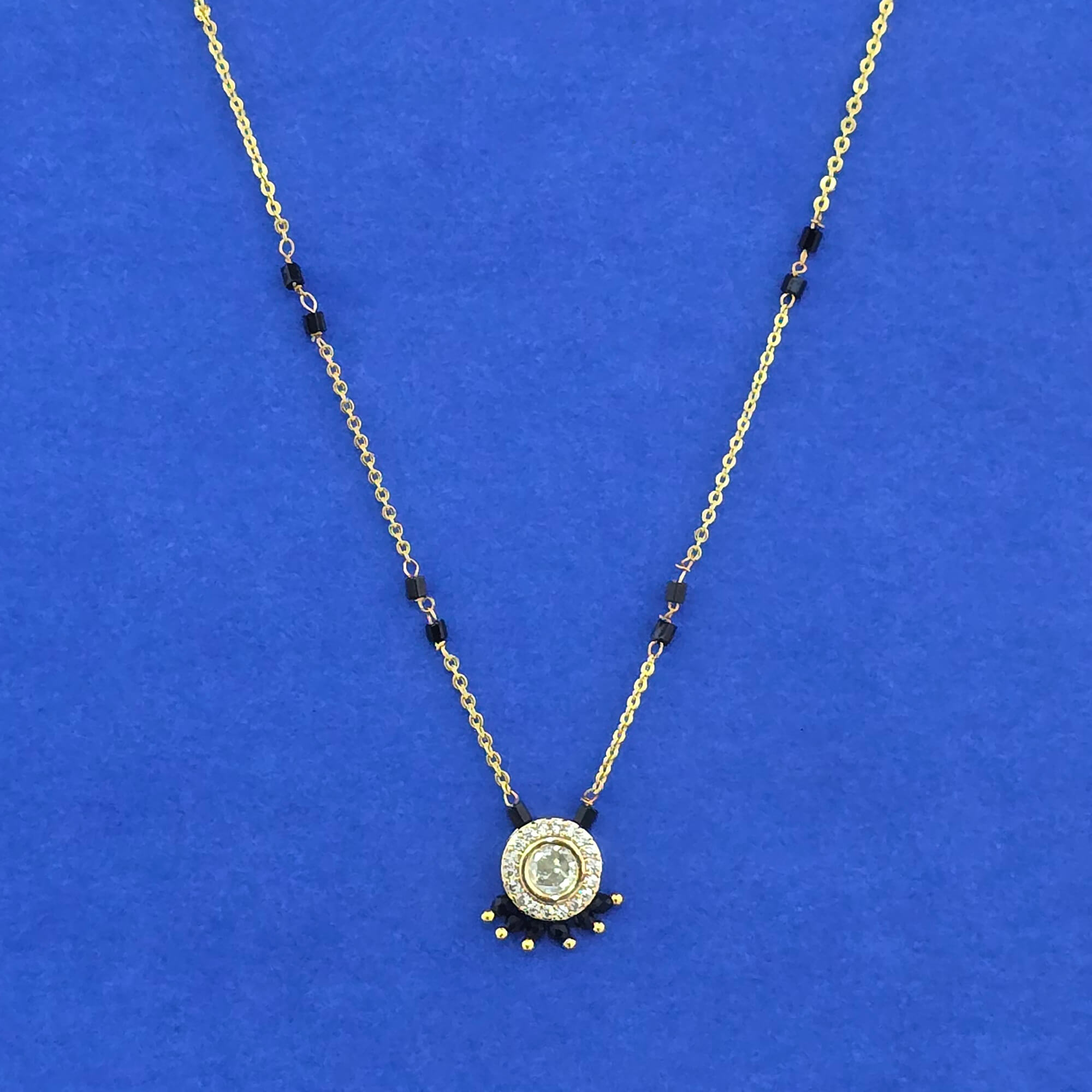 Kanhai Jewels offers an exclusive collection of finest quality crafted Fashion Jewellery in various colors. We make sure that our collection of Kundan Classic Mangalsutra With Gold Plating are beautiful, elegent & will surely galvanize you, because our products are unique, comfortable, fashion forward & very popular for the rich look. Base Metal of our product is Alloy, i.e Mixing of Copper & Brass. We pack all the products using quality packaging material to ensure safe and secure transportation.