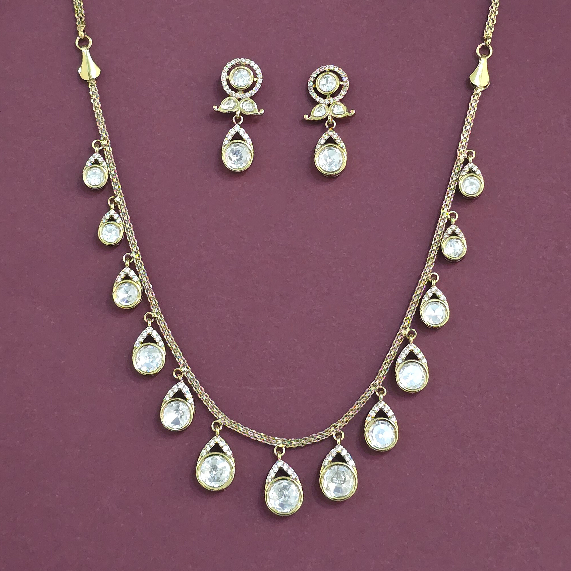 303521 Kundan Classic Necklace Set With Mehndi PlatingNew
