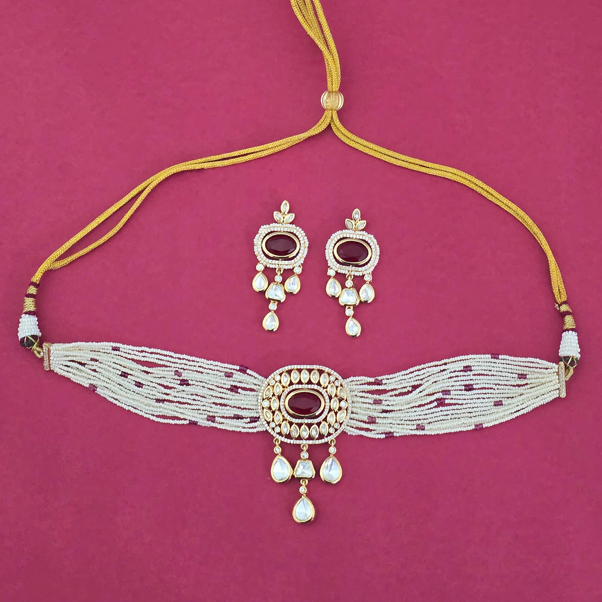 Kanhai Jewels offers an exclusive collection of finest quality crafted Fashion Jewellery in various colors. We make sure that our collection of Kundan Classic Necklace With Gold Plating are beautiful, elegent & will surely galvanize you, because our products are unique, comfortable, fashion forward & very popular for the rich look. Base Metal of our product is Alloy, i.e Mixing of Copper & Brass. We pack all the products using quality packaging material to ensure safe and secure transportation.