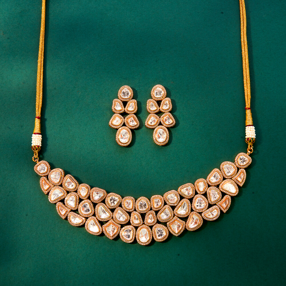Kanhai Jewels offers an exclusive collection of finest quality crafted Fashion Jewellery in various colors. We make sure that our collection of Kundan Classic Necklace With Gold Plating are beautiful, elegent & will surely galvanize you, because our products are unique, comfortable, fashion forward & very popular for the rich look. Base Metal of our product is Alloy, i.e Mixing of Copper & Brass. We pack all the products using quality packaging material to ensure safe and secure transportation.