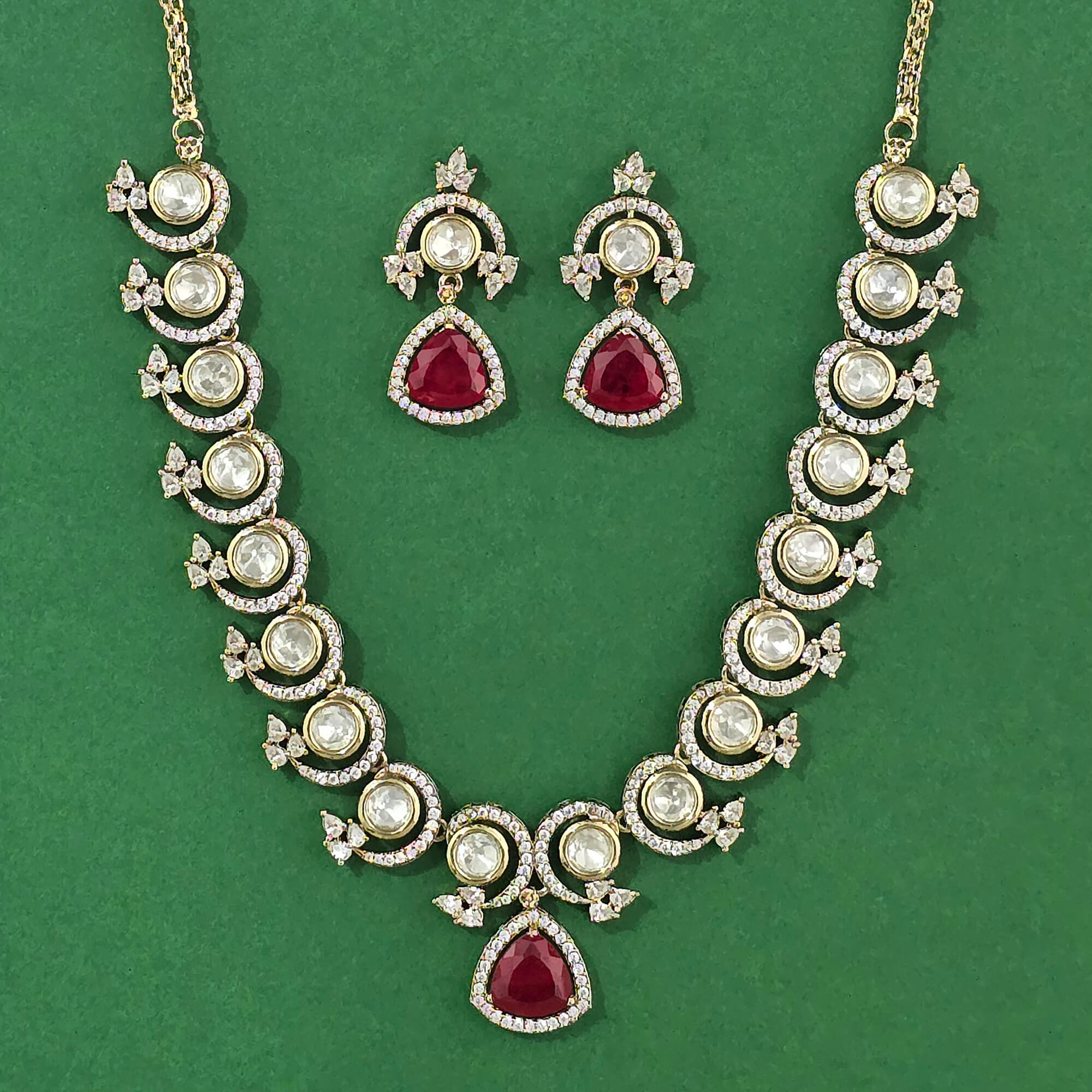 Kanhai Jewels offers an exclusive collection of finest quality crafted Fashion Jewellery in various colors. We make sure that our collection of Kundan Classic Necklace With Mehndi Plating are beautiful, elegent & will surely galvanize you, because our products are unique, comfortable, fashion forward & very popular for the rich look. Base Metal of our product is Alloy, i.e Mixing of Copper & Brass. We pack all the products using quality packaging material to ensure safe and secure transportation.