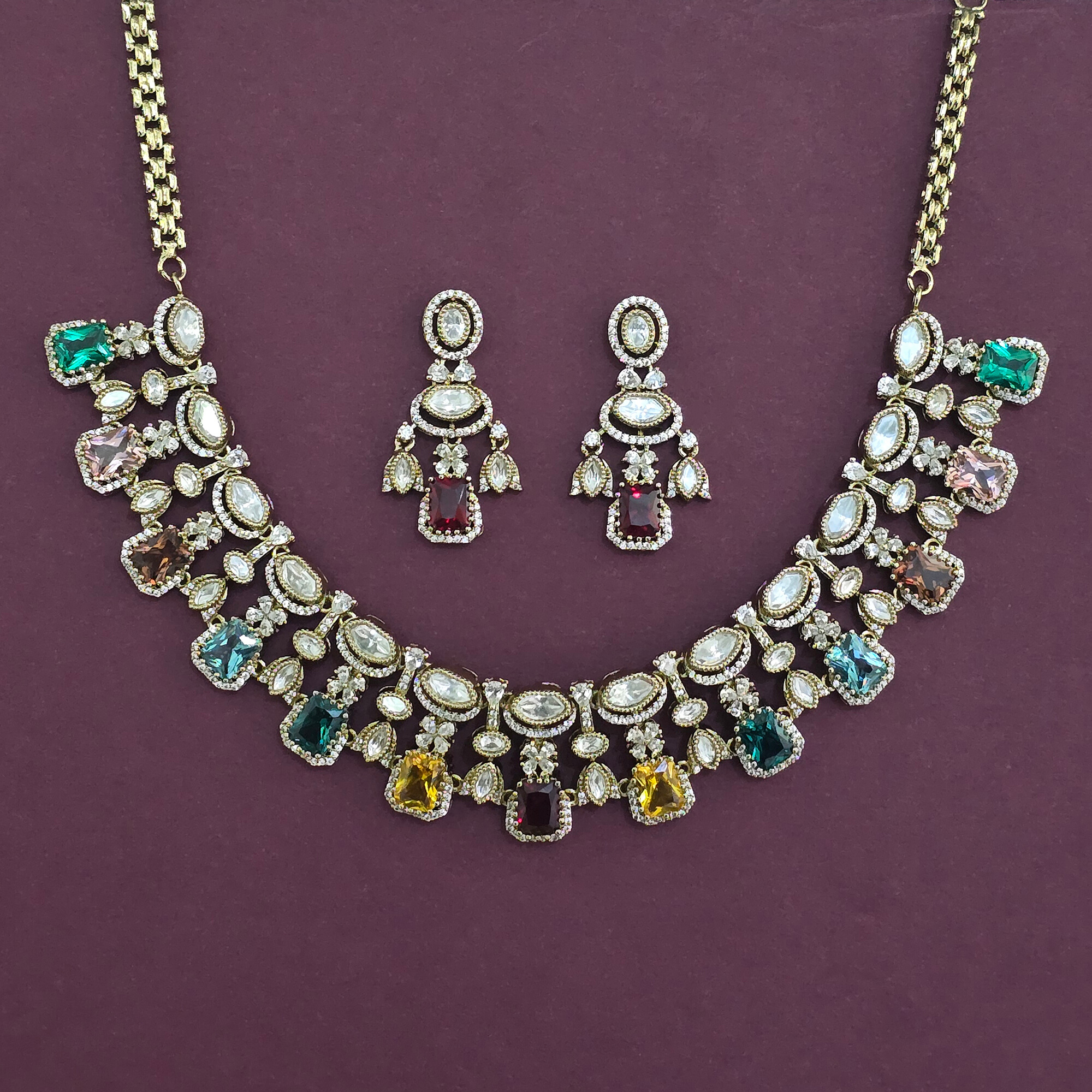 • Kundan Classic Necklace With Mehndi Plating