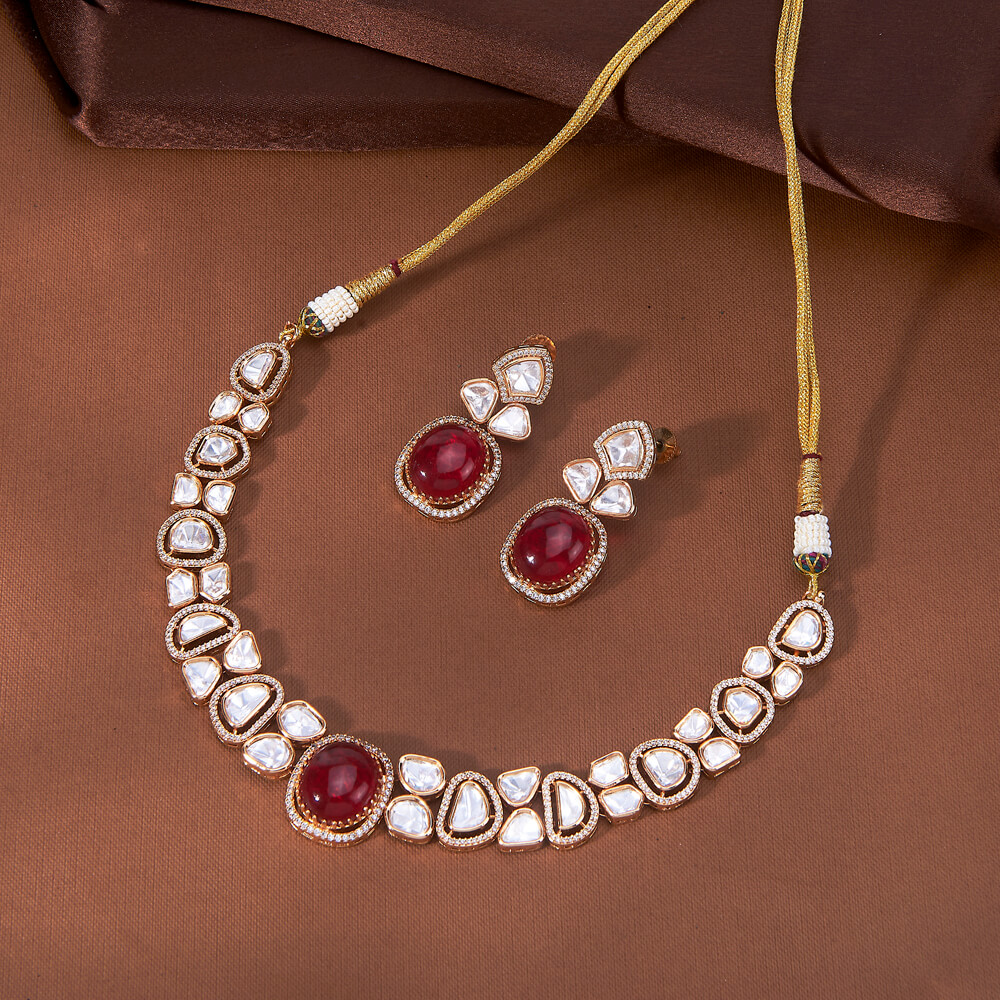 900293 Kundan Classic Necklace With Rose Gold Plating