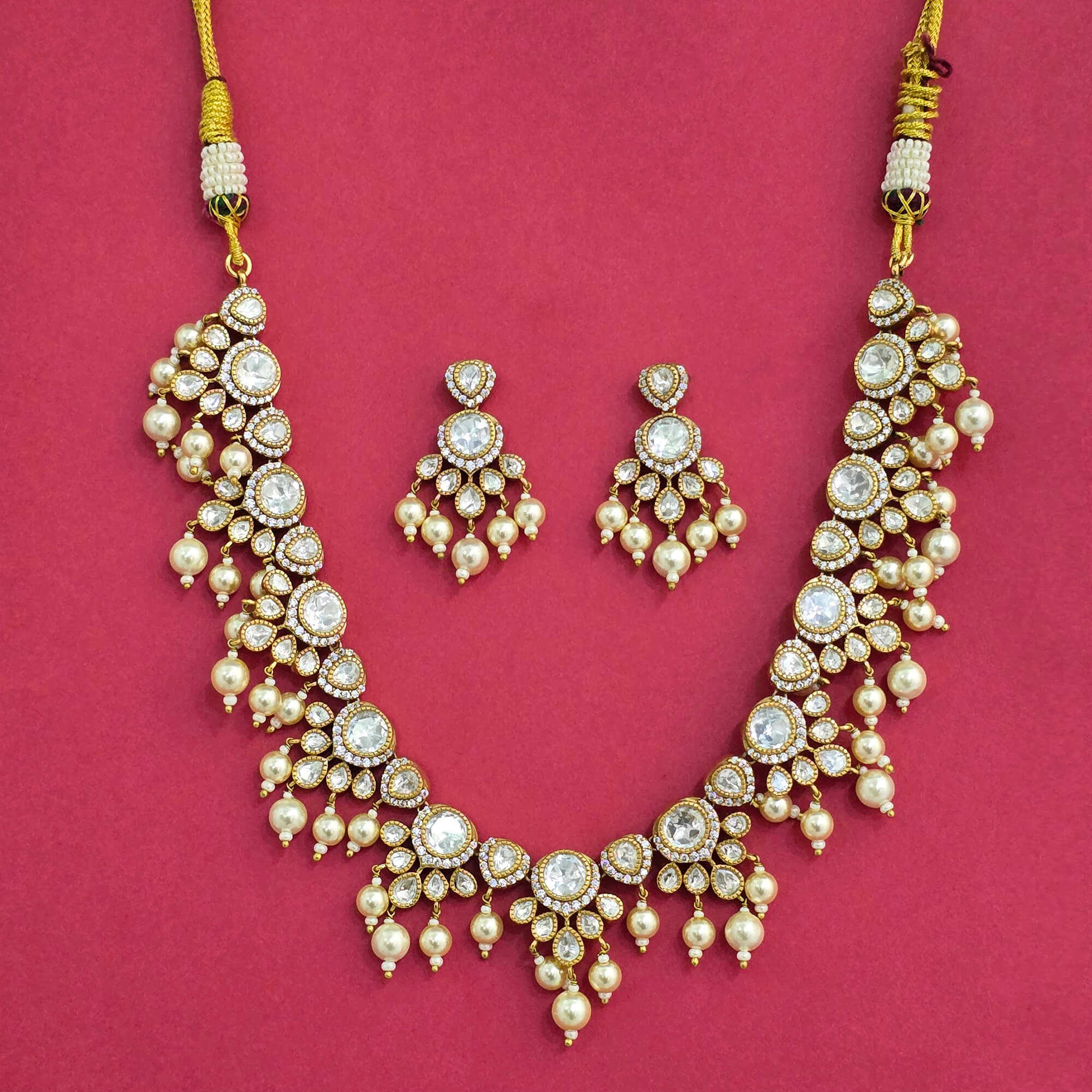 Kanhai Jewels offers an exclusive collection of finest quality crafted Fashion Jewellery in various colors. We make sure that our collection of Kundan Classic Necklace With Victorian Plating are beautiful, elegent & will surely galvanize you, because our products are unique, comfortable, fashion forward & very popular for the rich look. Base Metal of our product is Alloy, i.e Mixing of Copper & Brass. We pack all the products using quality packaging material to ensure safe and secure transportation.