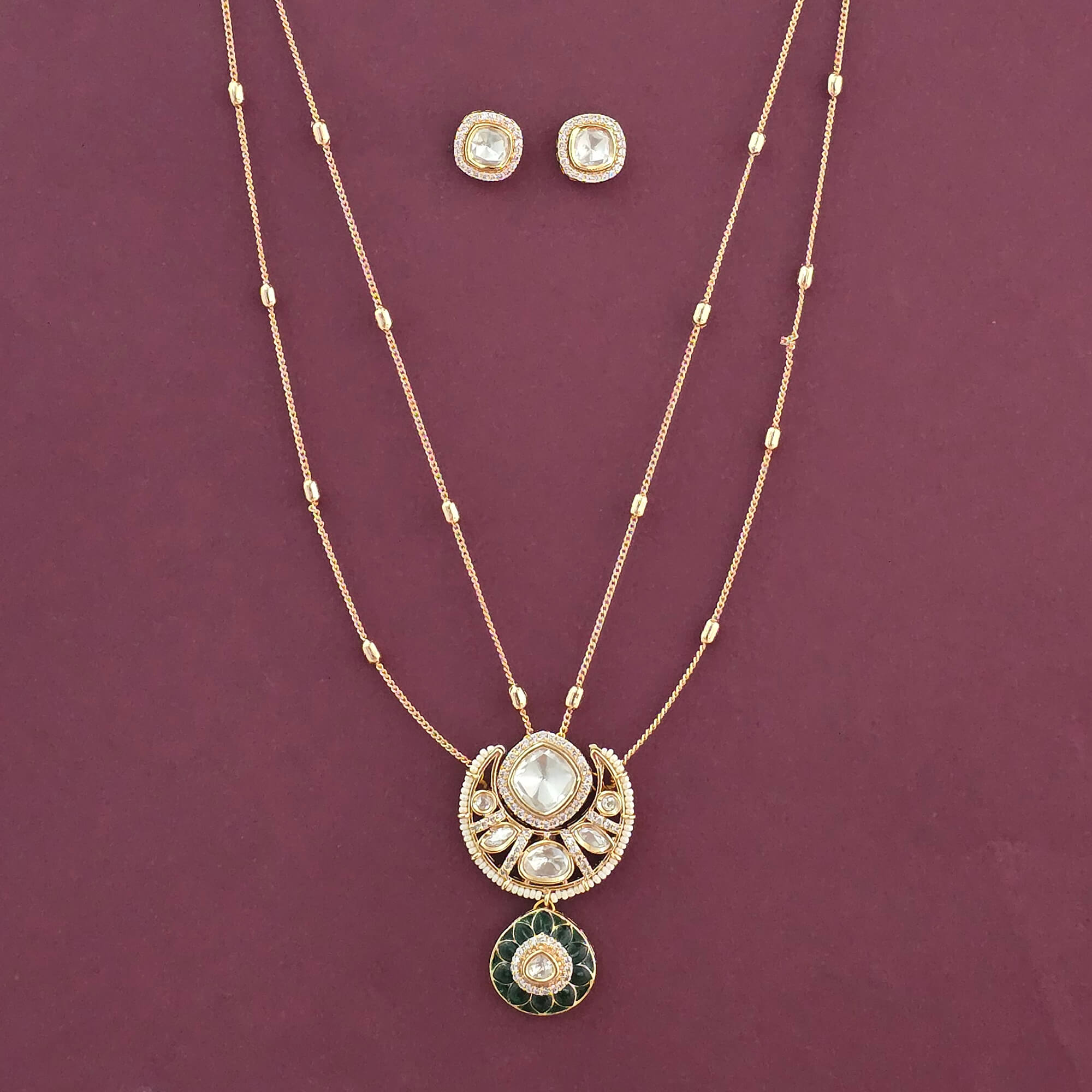 352599 Kundan Classic Pendant Set With Carat Gold Plating