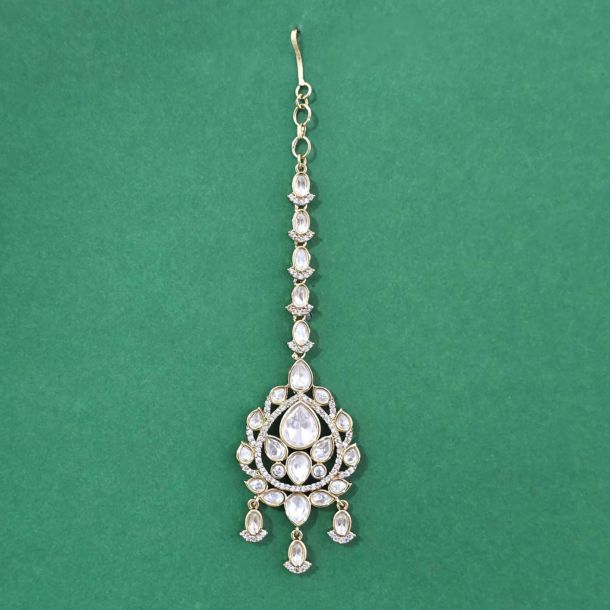 Kanhai Jewels offers an exclusive collection of finest quality crafted Fashion Jewellery in various colors. We make sure that our collection of Kundan Classic Tikka With Carat Mehndi Plating are beautiful, elegent & will surely galvanize you, because our products are unique, comfortable, fashion forward & very popular for the rich look. Base Metal of our product is Alloy, i.e Mixing of Copper & Brass. We pack all the products using quality packaging material to ensure safe and secure transportation.