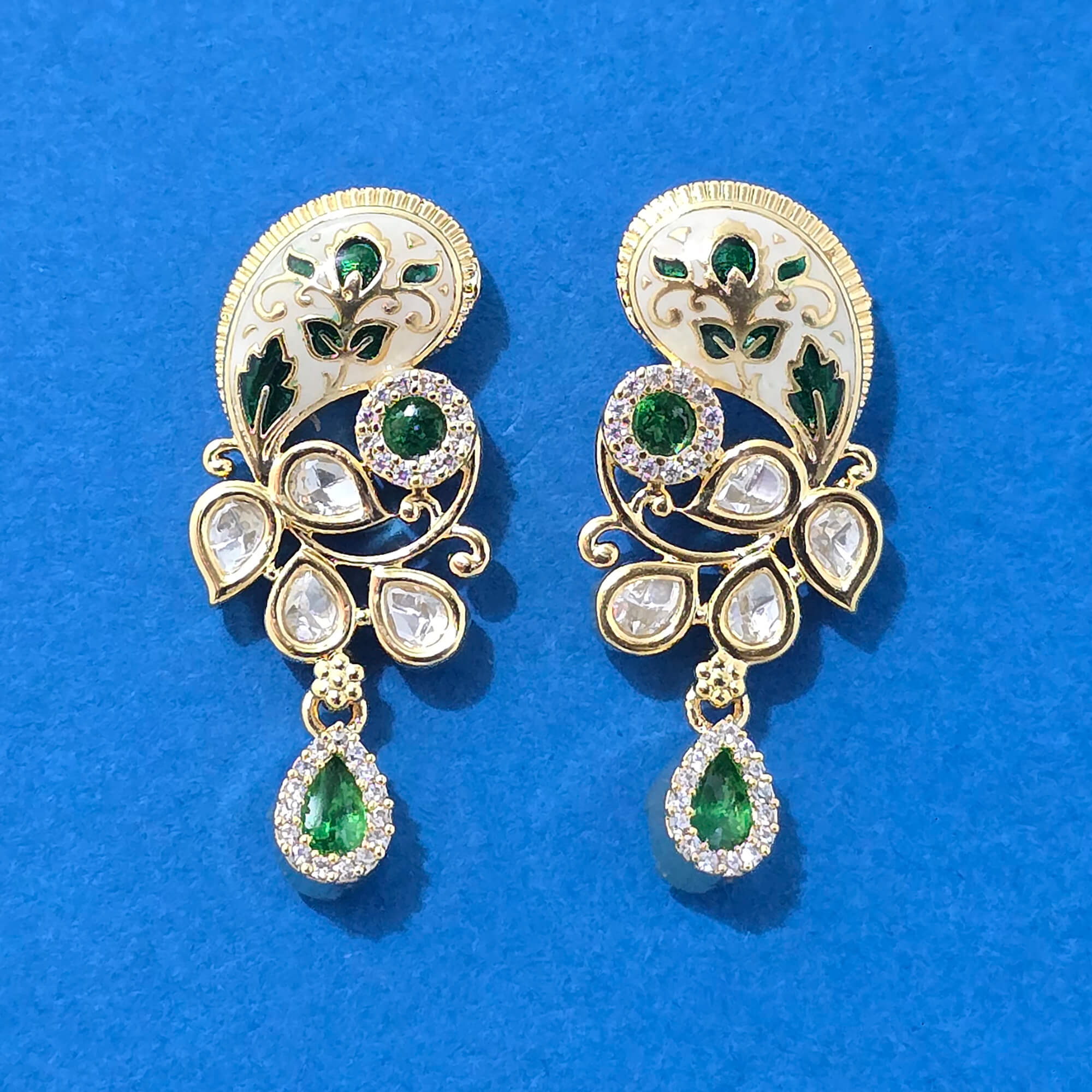 Kanhai Jewels offers an exclusive collection of finest quality crafted Fashion Jewellery in various colors. We make sure that our collection of Kundan Delicate Earring With Carat Gold Plating are beautiful, elegent & will surely galvanize you, because our products are unique, comfortable, fashion forward & very popular for the rich look. Base Metal of our product is Alloy, i.e Mixing of Copper & Brass. We pack all the products using quality packaging material to ensure safe and secure transportation.